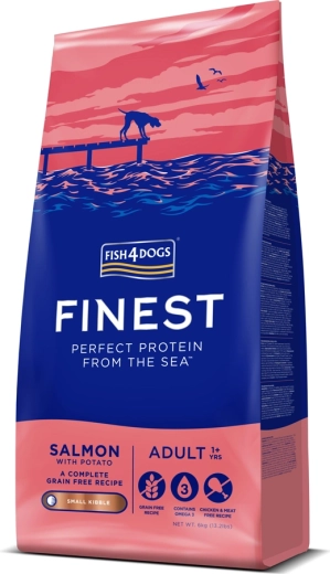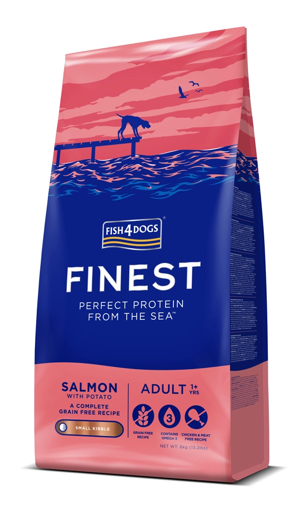 Fish4Dogs Finest met zalm en aardappelen is een complete en evenwichtige brok voor kleine volwassen honden. Het milde recept met Noorse zalm levert licht verteerbare eiwitten en een hoog gehalte aan omega-3, ter ondersteuning van huid, vacht, vitaliteit en algehele conditie. Aardappelen en erwtenzetmeel dienen als milde koolhydraatbronnen zonder de belasting van granen.