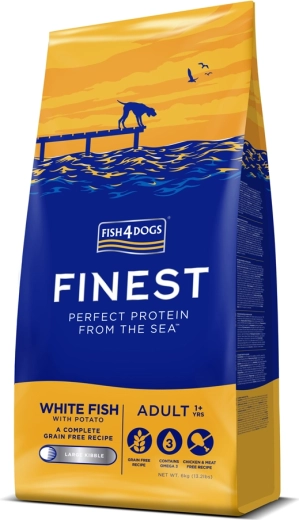 FISH4DOGS voeding van witte vis met aardappelen is een uitgebalanceerde, graanvrije droge voeding, gemaakt van seizoensgebonden soorten witte vis uit de noordelijke Atlantische Oceaan. Dankzij het gehalte aan zalmmeel en zalmolie is het rijk aan omega-3, die een gezonde huid, een glanzende vacht en de algehele conditie ondersteunt. Lichte viseiwitten en aardappelen zijn mild voor de spijsvertering en dragen bij aan een goede verteerbaarheid.