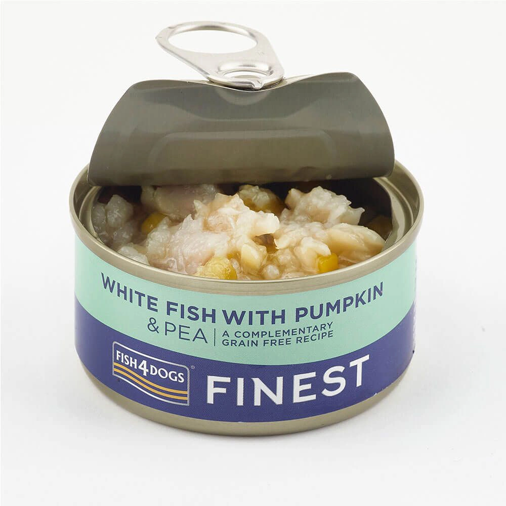 Hondenvoer in blik van witvis met pompoen en erwten 85 g