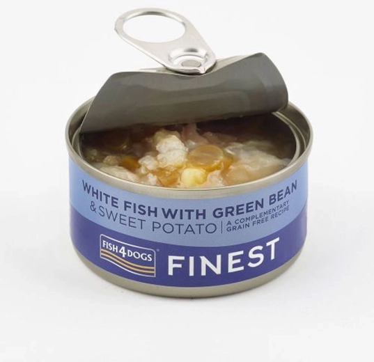 Verwen je hond met een evenwichtige en smakelijke portie natuur. Het FISH4DOGS blik met witte vis, zoete aardappelen en sperziebonen levert hoogwaardige eiwitten uit vis en zachte vezels uit groenten. Dankzij het van nature lage vetgehalte is het ideaal voor honden met een gevoelige spijsvertering.