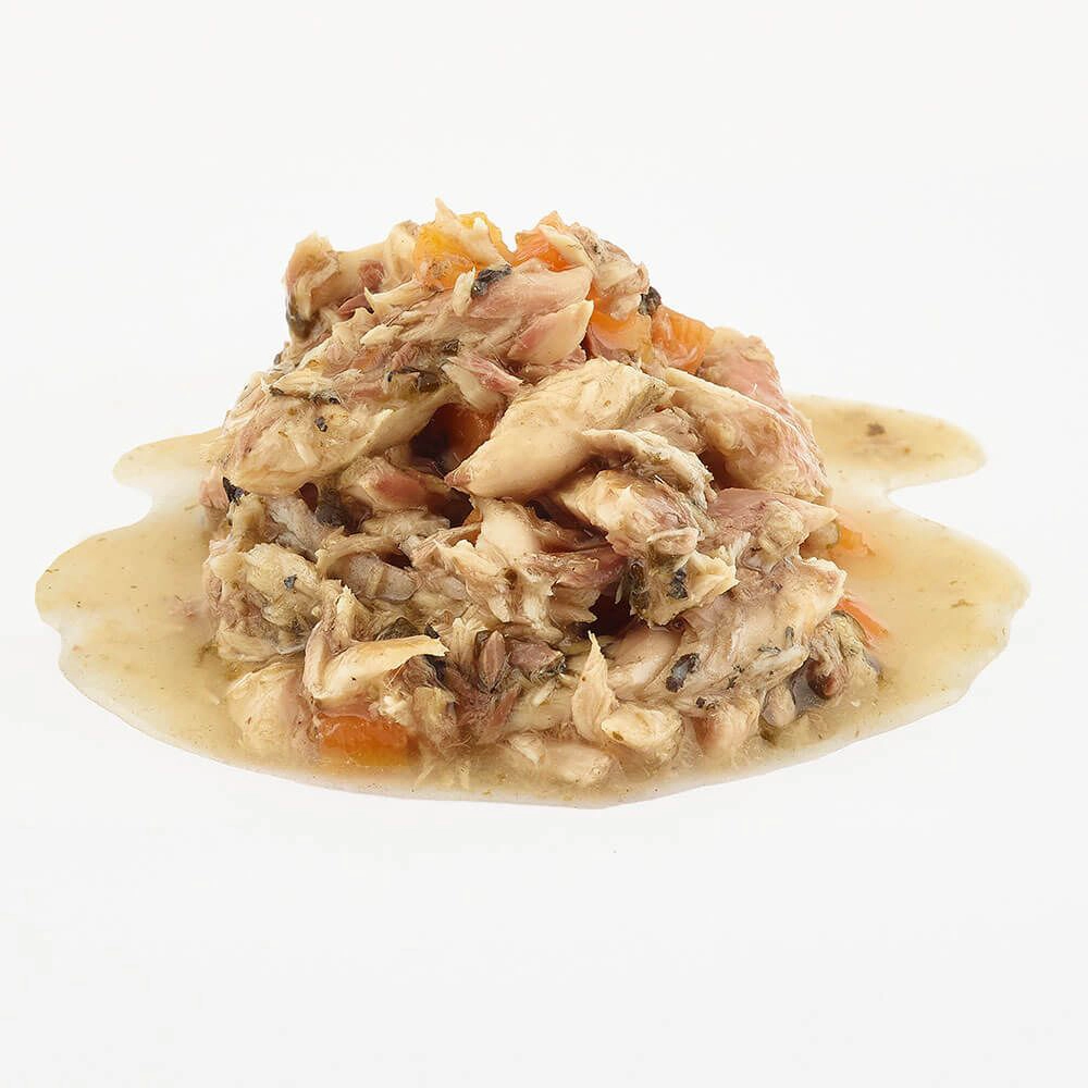 Deze sappige blikvoeding met makreel, wortel en spinazie is een uitgebalanceerd en licht verteerbaar voer voor dagelijks gebruik. Dankzij het hoge visgehalte levert het kwalitatieve dierlijke eiwitten, natuurlijke omega-vetzuren en ondersteunt het vitaliteit en een glanzende vacht. Graanvrij en zonder kunstmatige toevoegingen – alleen pure ingrediënten voor een tevreden hondenbuik.