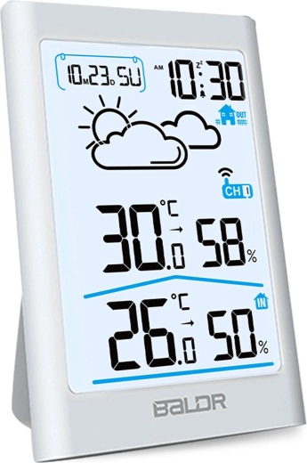 Dit compacte weerstation combineert nauwkeurige temperatuur- en vochtigheidsmeting met praktische functies zoals kalender, alarm en weersvoorspelling via pictogrammen. Het heldere verlichte lcd-scherm maakt het aflezen overdag en ’s nachts eenvoudig en het elegante witte ontwerp past in elk interieur.