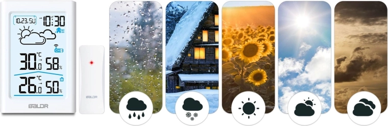 De draadloze sensor geeft actuele waarden van buiten door, terwijl het station het klimaat binnen meet. Volg de verschillen en behoud een gezond binnenmilieu.