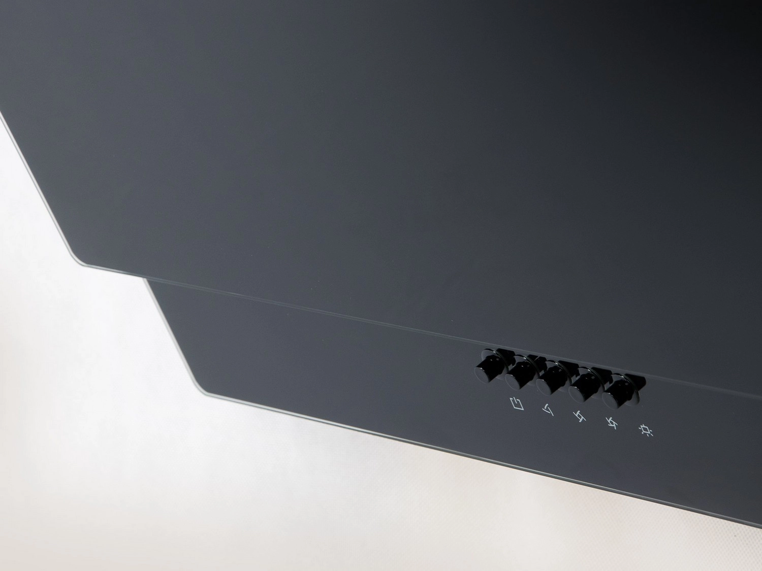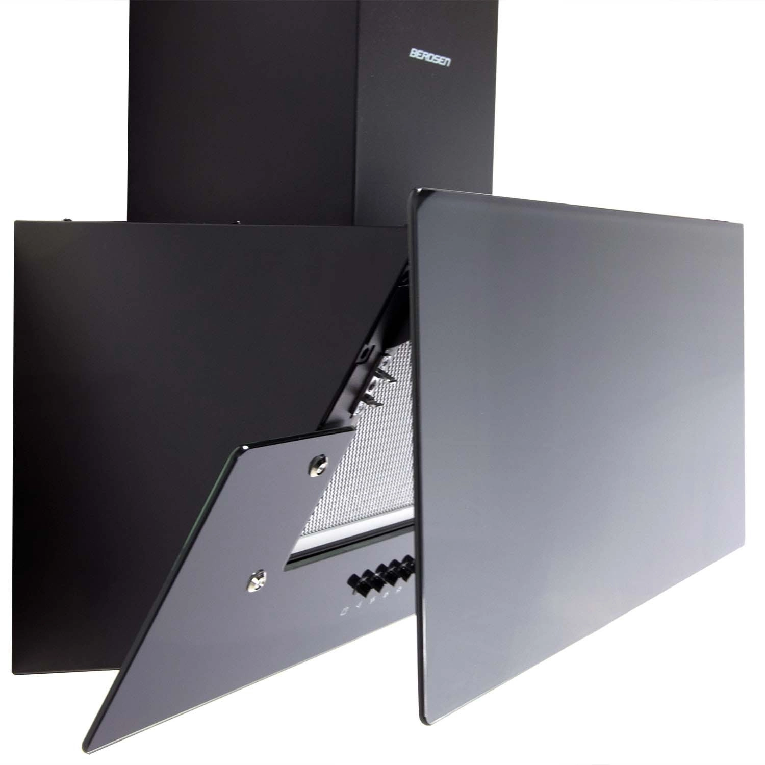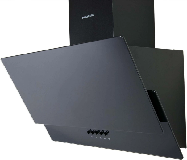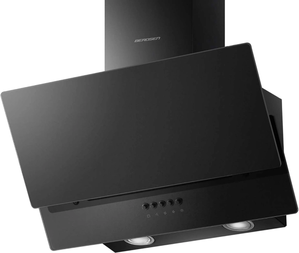 Het zwarte glanzende oppervlak van gehard glas geeft de keuken een moderne touch en biedt gemakkelijke toegang tot de filters en bediening.