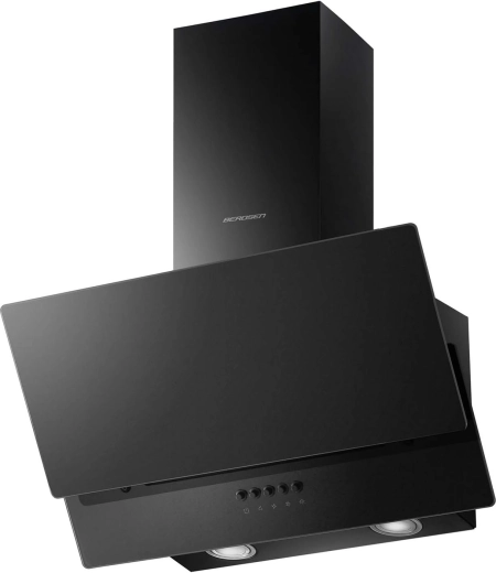 Elegante schoorsteenafzuigkap BERDSEN 60 cm in matte zwarte uitvoering combineert hoge efficiëntie tot 350 m³/u, 3 snelheden en 2 bedrijfsmodi – afvoer en recirculatie. Het voorste zwarte glazen paneel van gehard glas en de energieszuinige LED-verlichting benadrukken de look van een moderne keuken. In de verpakking vind je ook een afvoerslang van 2 m en twee telescopische schoorsteenkappen voor eenvoudige hoogte-instelling.