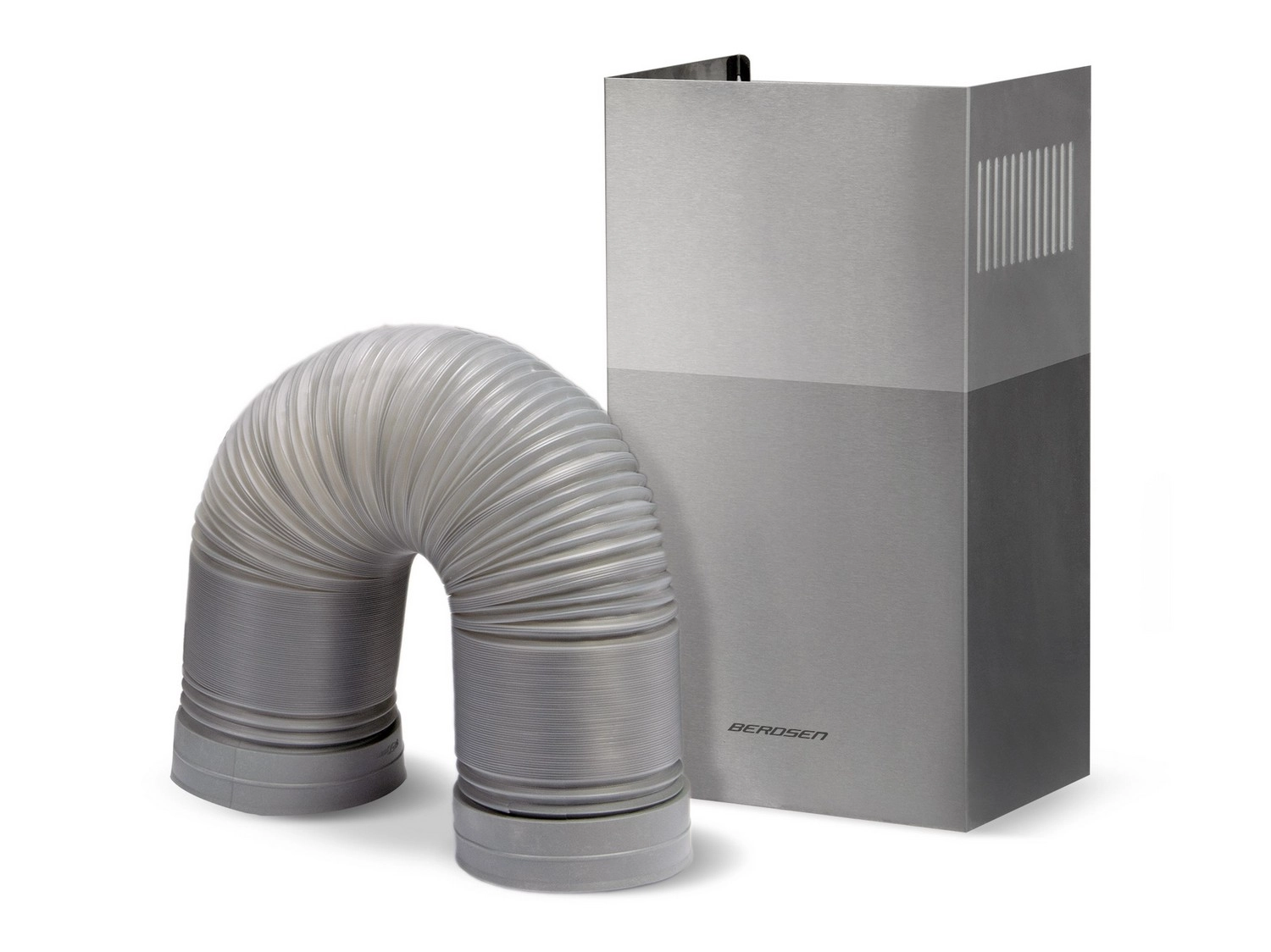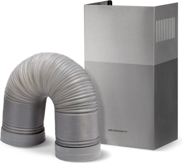 Het apparaat kan werken met afvoer naar de schoorsteen of als recirculatie-afzuigkap met optionele BERDSEN BT-S koolstoffilters (niet inbegrepen). Mechanische knopbediening is eenvoudig en duurzaam, terwijl het 5-laags aluminium vetfilter zorgt voor makkelijk onderhoud en een hoge filterefficiëntie.