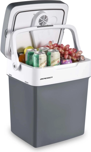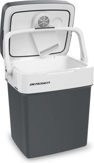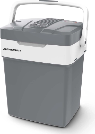De lichte en praktische auto-koelbox BERDSEN Icemax met een inhoud van 29 l houdt je drankjes en eten perfect gekoeld of aangenaam warm. Hij biedt twee voedingen 12 V/230 V, ECO- en Normal-modi, een elektronisch display met temperatuurinstelling en een USB‑poort voor het opladen van je telefoon. Dankzij thermo-elektrische koeling tot 18 °C onder de omgevingstemperatuur, verwarming tot +65 °C en inklapbare handgrepen met dekselvergrendeling is hij ideaal voor autoritten, strand en kamperen.