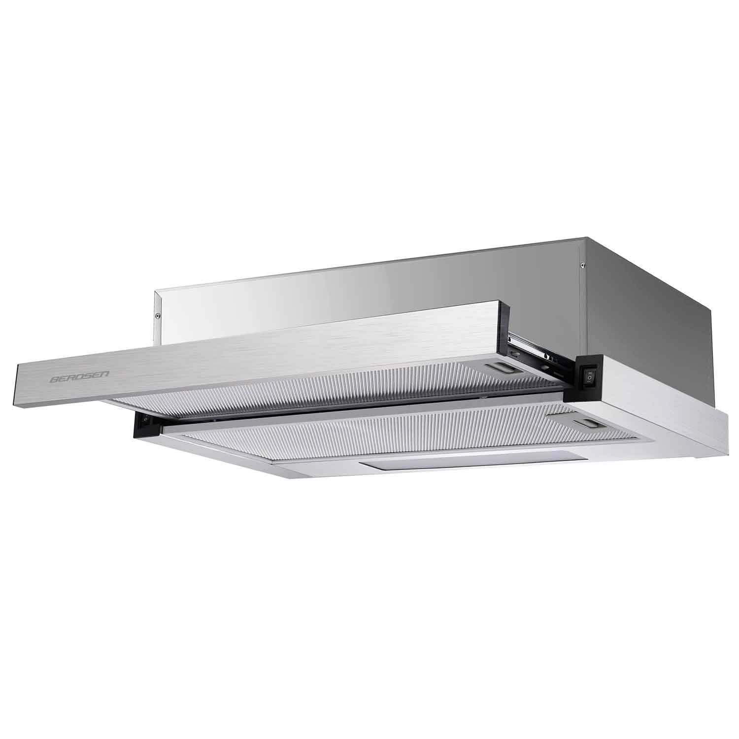 Compacte telescopische afzuigkap van BERDSEN met een breedte van 50 cm in INOX-uitvoering biedt een hoge efficiëntie tot 200 m³/u, 2 bedrijfsmodi (afvoer/recirculatie) en zuinige LED-verlichting van 2 W. Dankzij het uitschuifbare paneel wordt het opvangoppervlak voor damp vergroot, 3-laagse aluminium vetfilters beschermen de motor en zijn gemakkelijk te reinigen. Het stille en discrete ontwerp bespaart ruimte en past perfect in elke keuken.