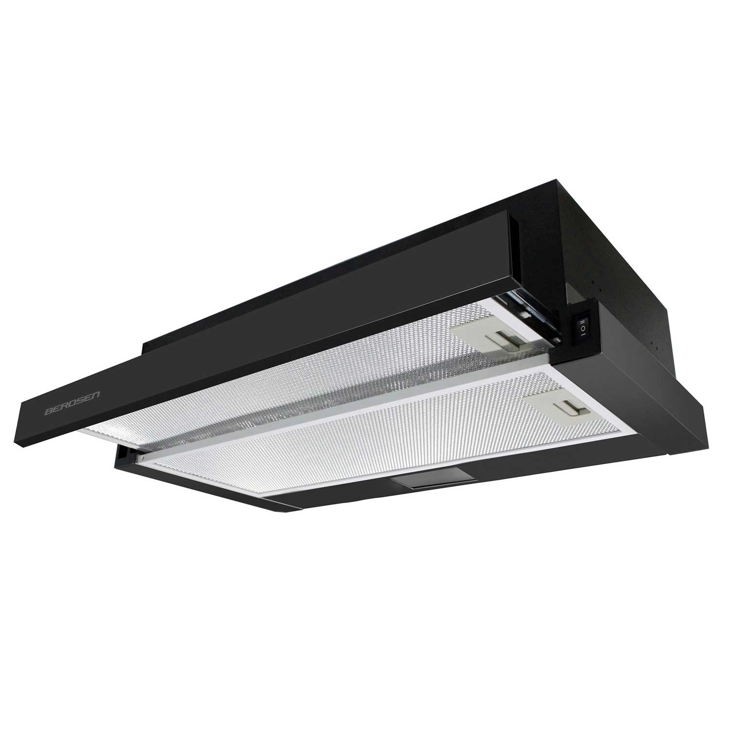 Compacte telescopische afzuigkap BERDSEN met een breedte van 50 cm in elegante zwarte kleur biedt krachtige afzuiging tot 200 m³/u, 2 bedrijfsmodi (afvoer en recirculatie), stille werking en energiezuinige 2 W LED-verlichting. Dankzij het uittrekbare paneel bespaart hij ruimte, past in elke keuken en met meerlaagse aluminiumfilters is hij gemakkelijk schoon te houden.