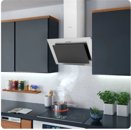Dankzij het 3-laags aluminium vetfilter wordt vet effectief opgevangen en wordt het schoonmaken van de keuken eenvoudiger. In de doos vindt u ook 2 uitschuifbare schoorsteenkappen voor hoogte-instelling en een flexibele afvoerslang van 2 m voor snelle montage.