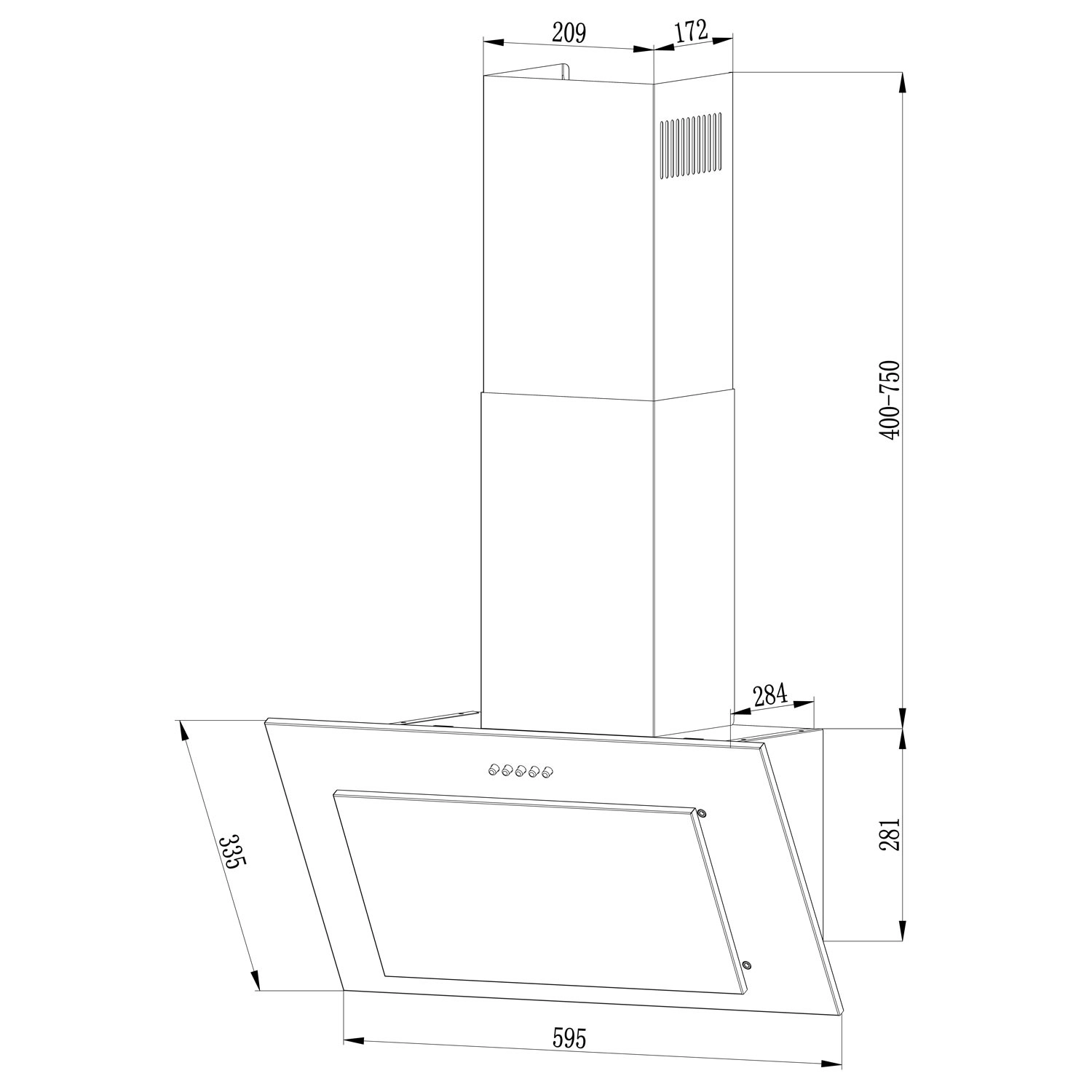 Schoorsteen-afzuigkap 60 cm rvs en zwart glas