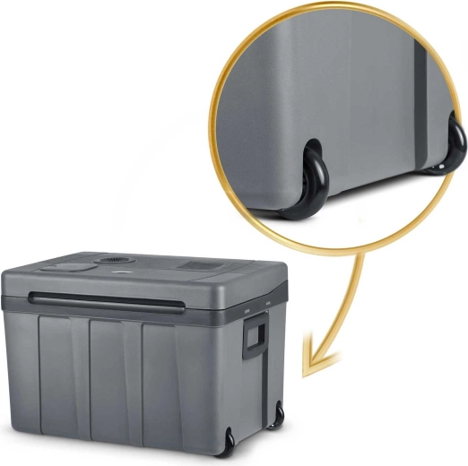 De koelbox kan tot 15 °C onder de omgevingstemperatuur koelen en in de verwarmingsmodus gerechten warm houden tot +65 °C – ideaal voor warme maaltijden onderweg. De inklapbare handgreep, geïntegreerde wielen en stevige grepen vergemakkelijken het verplaatsen. Na loskoppelen van de stroom behoudt hij de temperatuur tot 3 uur, dus perfect voor strand, picknick en kampvuur.