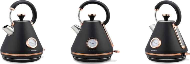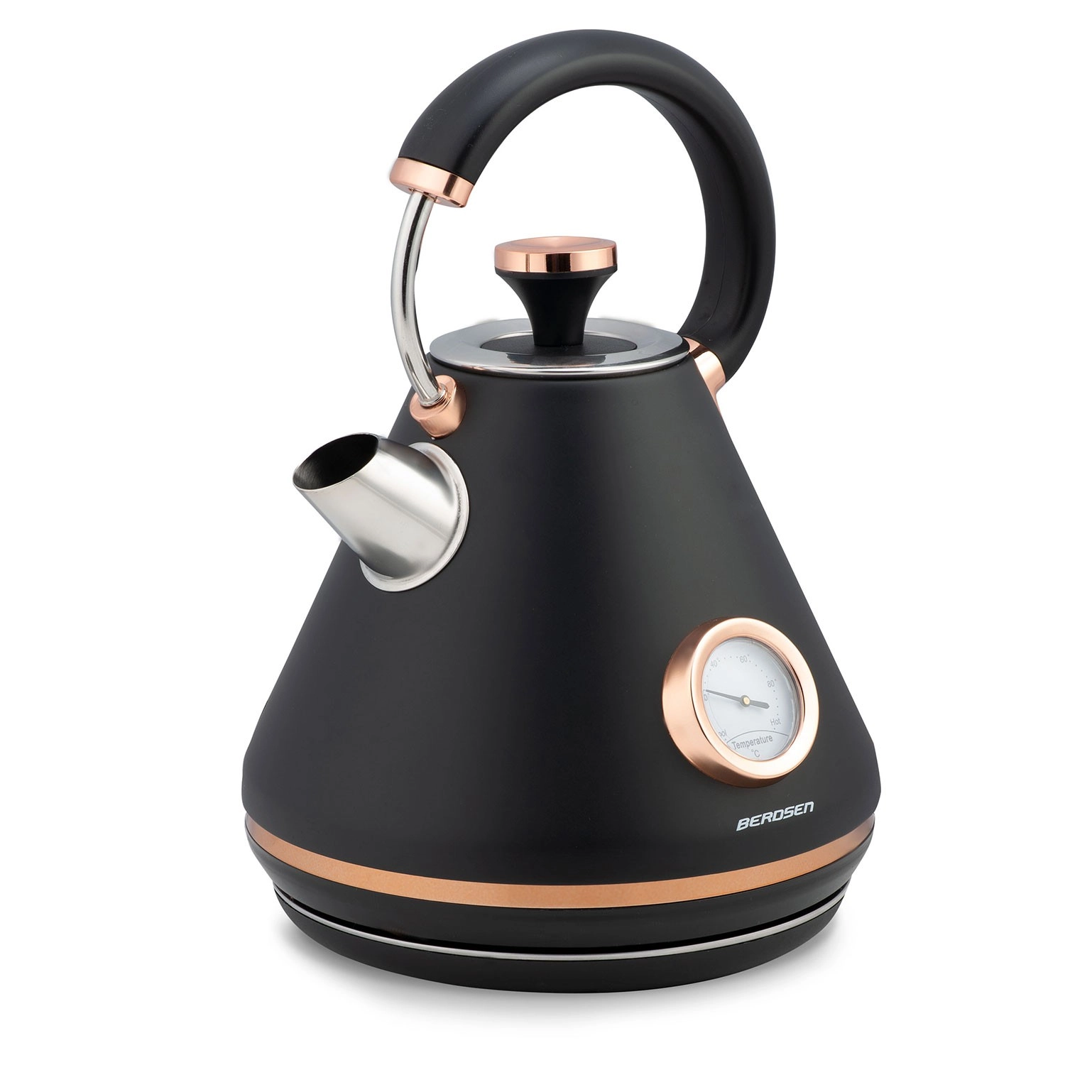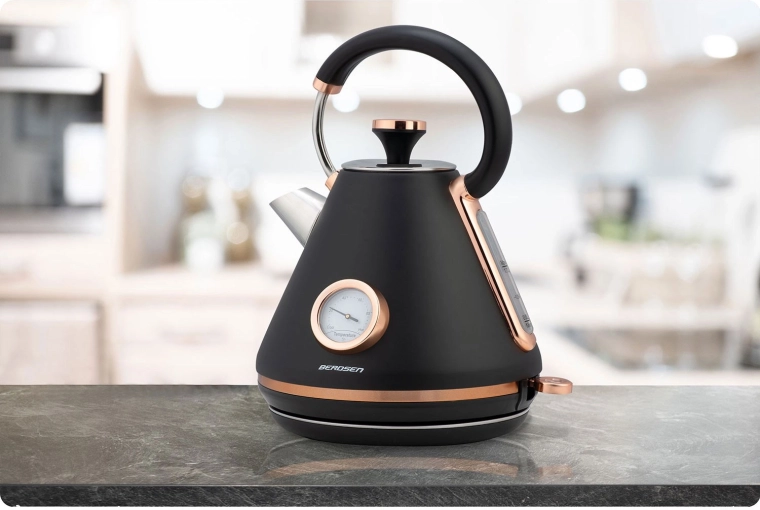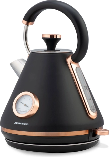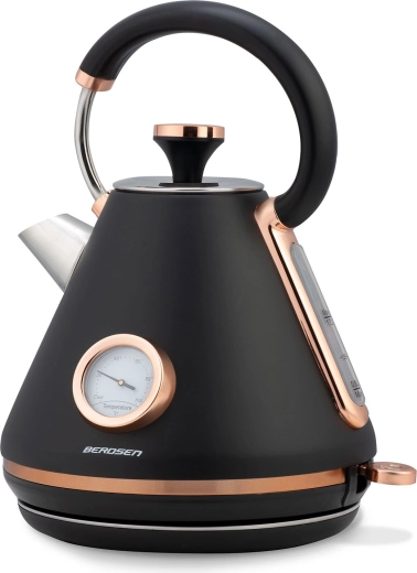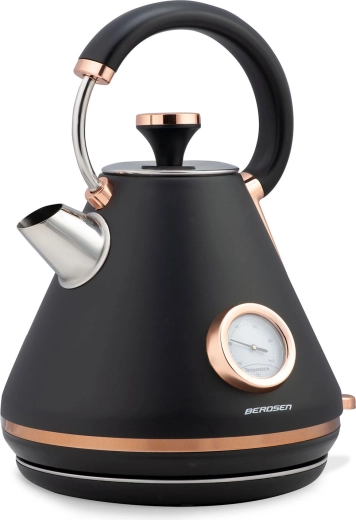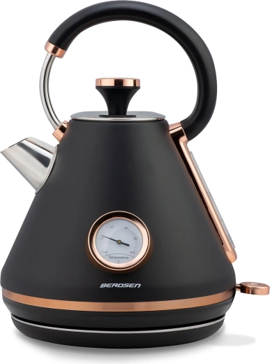 Verrijk je keuken met de elegante retro waterkoker van Berdsen met een inhoud van 1,7 l. Dankzij de ingebouwde thermometer kies je moeiteloos de ideale temperatuur voor groene thee, koffie en kruidendranken. De matte metalen afwerking is onderhoudsvriendelijk en geeft je interieur een premium uitstraling.