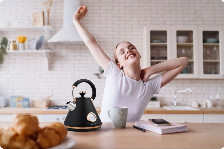 De ingebouwde analoge thermometer maakt het mogelijk de watertemperatuur in realtime te volgen en thee of koffie op de ideale temperatuur te bereiden – zonder te gokken.