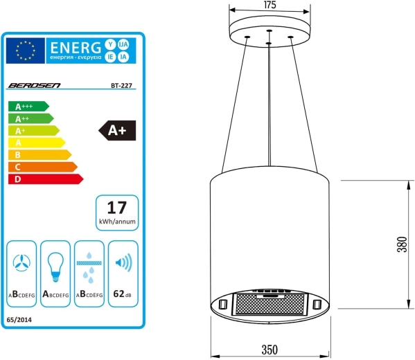 Het cilindervormige design aan staalkabels valt op door zijn compacte afmetingen en premium afwerking. De zwarte stalen behuizing is bestand tegen hoge temperaturen en is eenvoudig te onderhouden. De afzuigkap werkt in recirculatiestand met de meegeleverde koolstoffilters, waardoor geuren effectief worden geabsorbeerd, ook in keukens zonder afvoer.