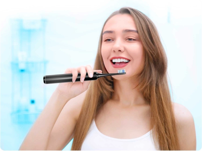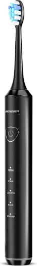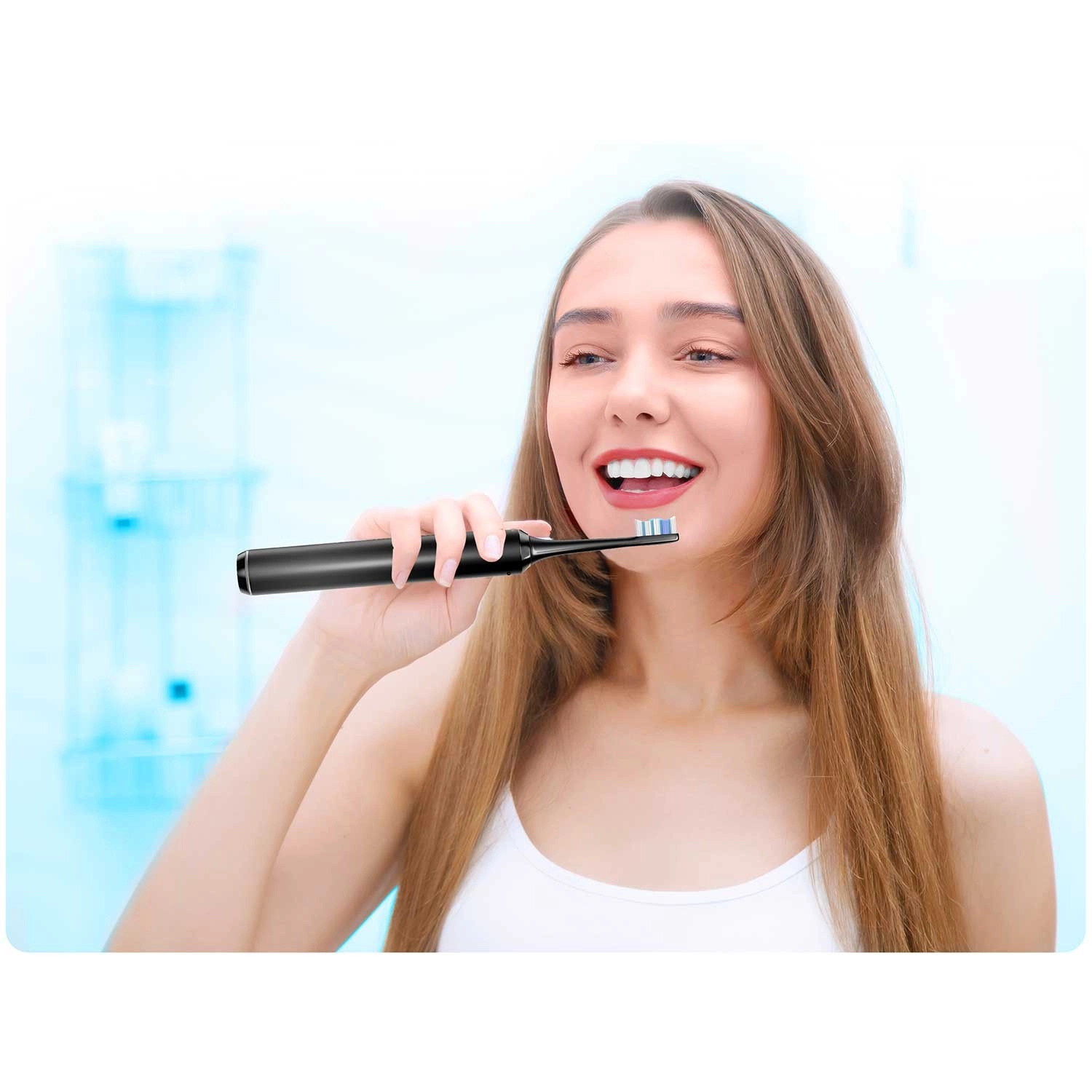 De minimalistische behuizing ligt prettig in de hand, de waterdichte constructie zorgt voor veilig gebruik in de badkamer en de multizone‑borstels reinigen effectief zelfs lastig bereikbare plekken.