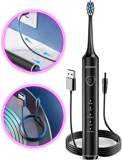 - Berdsen Sonica B5 tandenborstel, 2 opzetborstels, USB‑kabel, originele verpakking, handleiding