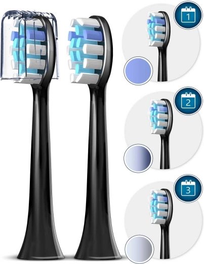 - Twee vervangende opzetborstels met multizone‑borstels, slijtage‑indicator.