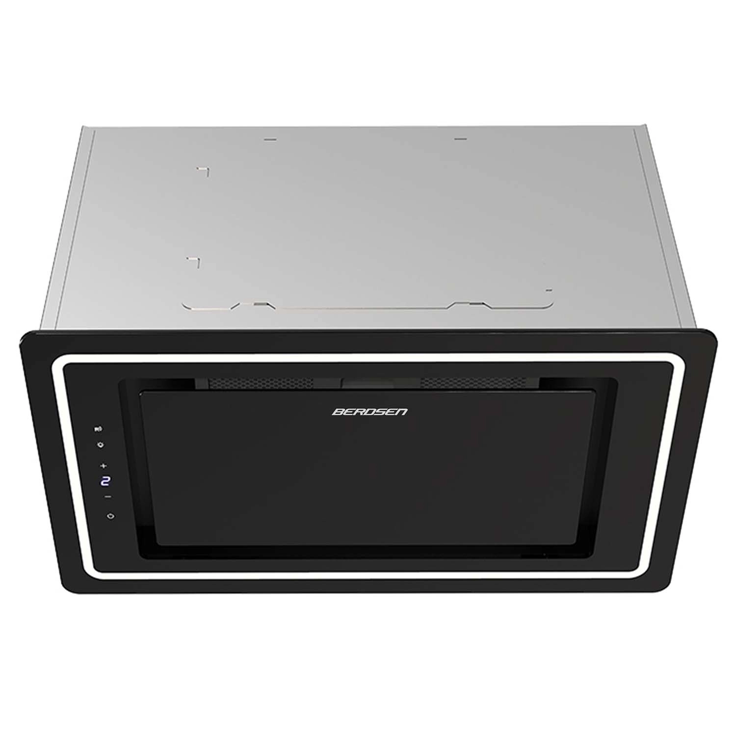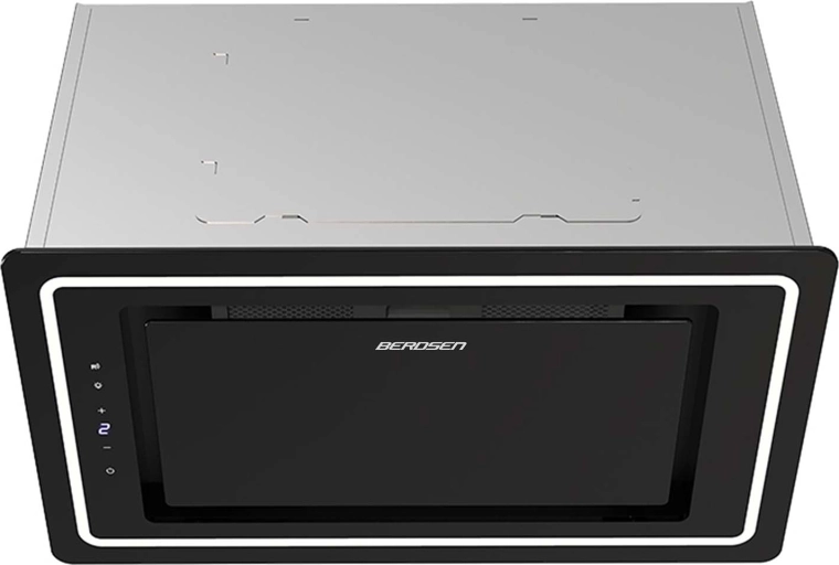 Elegante ingebouwde afzuigkap BERDSEN met een breedte van 52 cm in zwart glas, met hoge efficiëntie tot 432 m3/h, stille en zuinige werking in energieklasse A+ en moderne LED-verlichting. Dankzij 9 snelheden, touch- en afstandsbediening en de mogelijkheid voor afvoer of recirculatie verwijdert hij betrouwbaar stoom, geuren en vet en houdt hij de lucht in de keuken schoon.