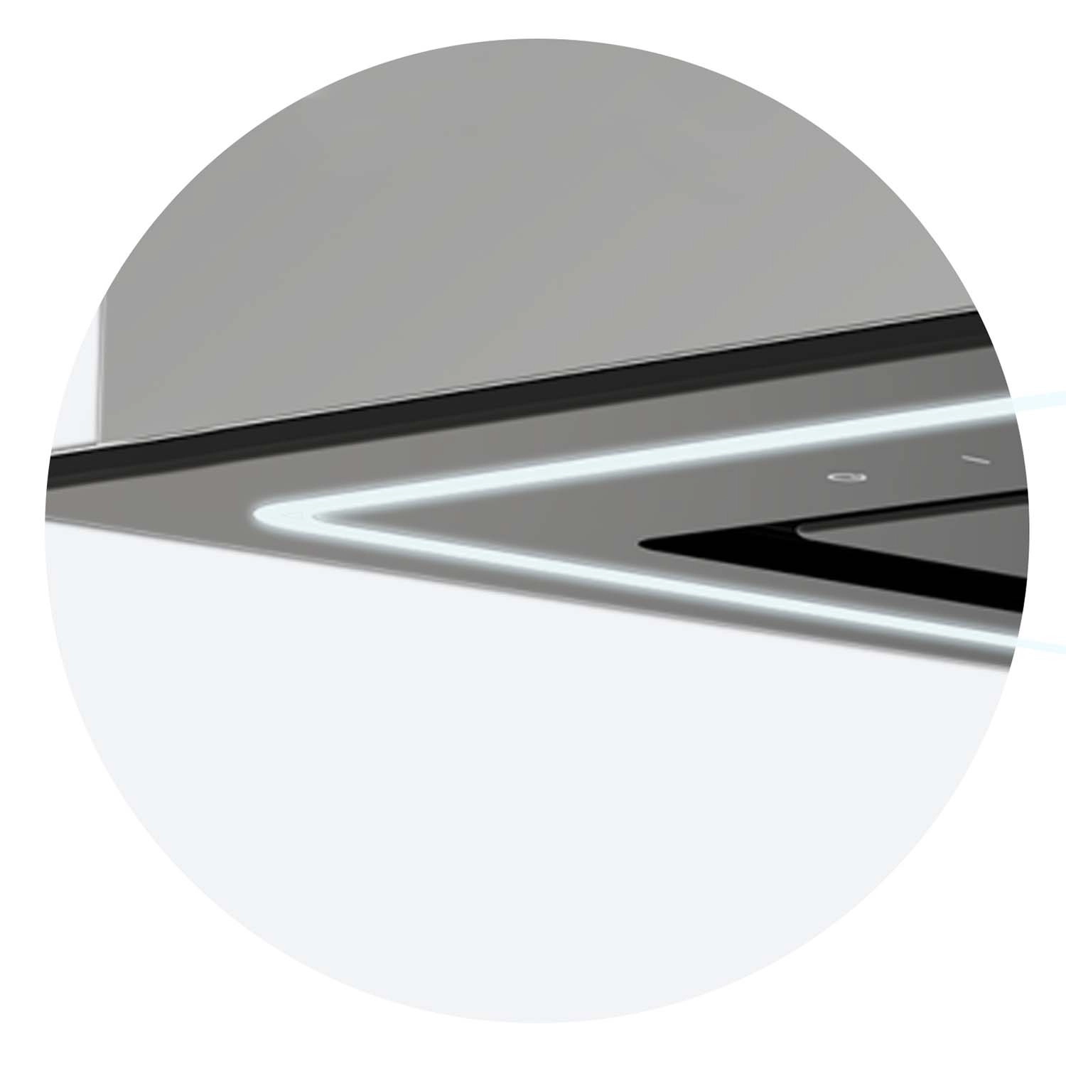 Comfortabele bediening van afzuiging en verlichting via een gevoelige touchbediening of de meegeleverde afstandsbediening – gemak binnen handbereik.