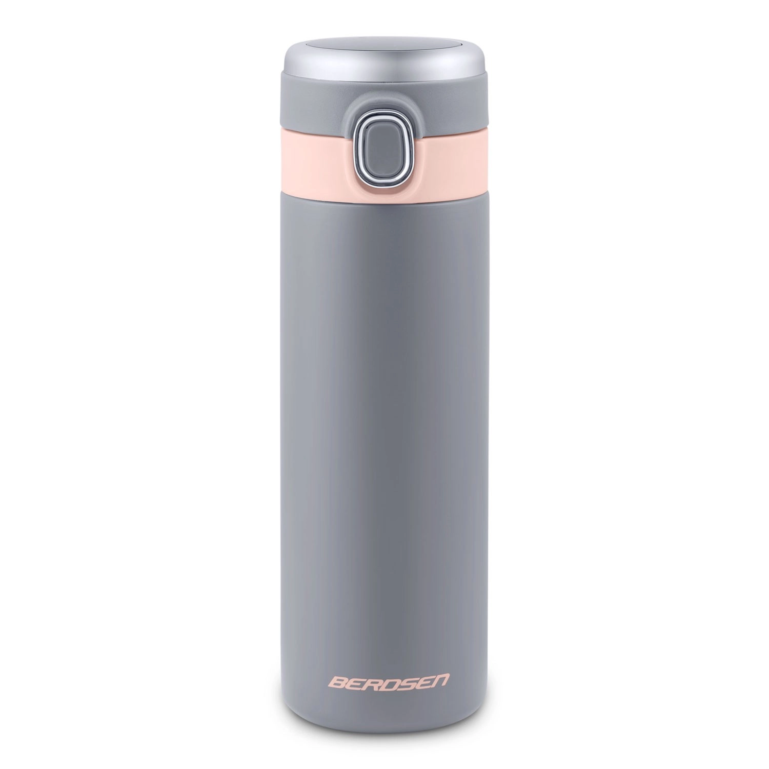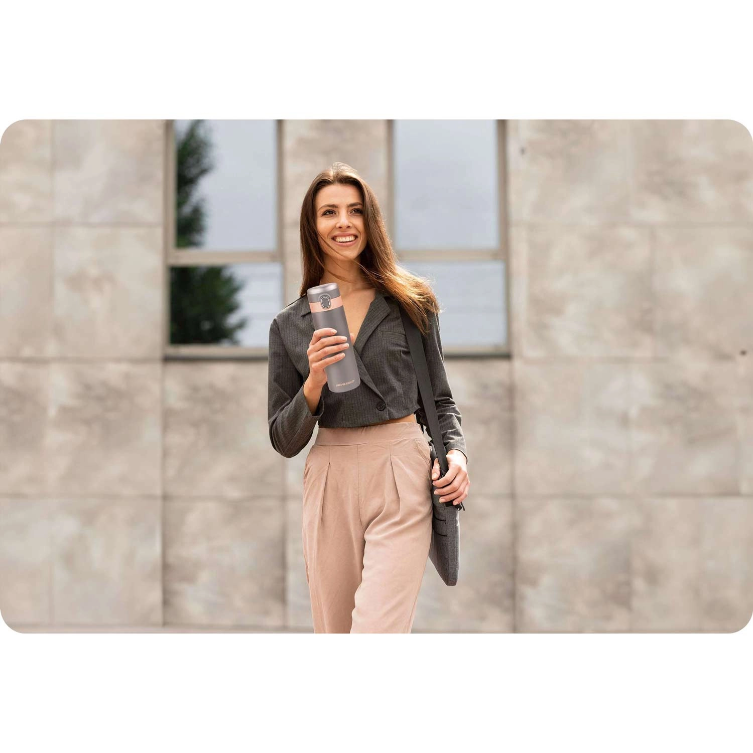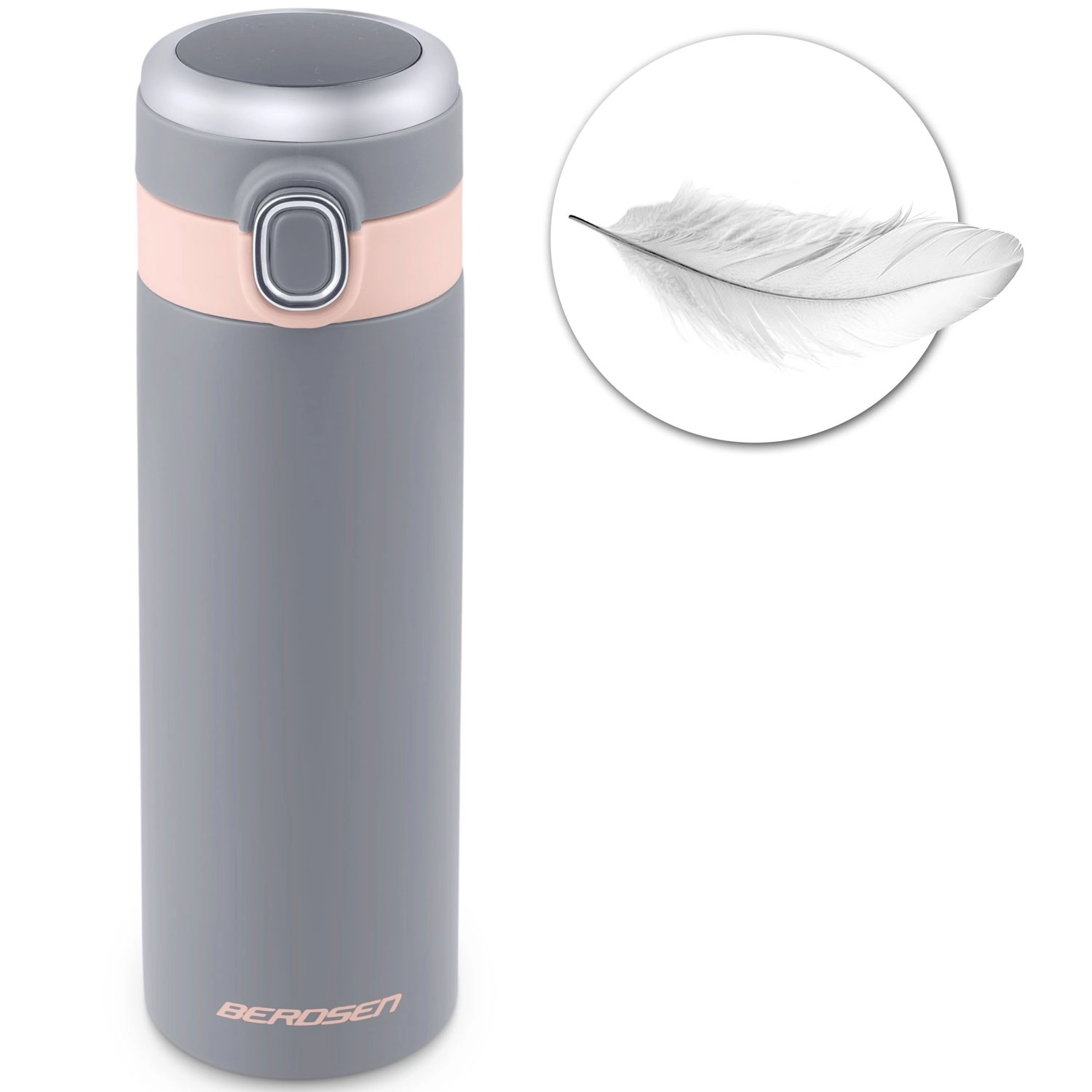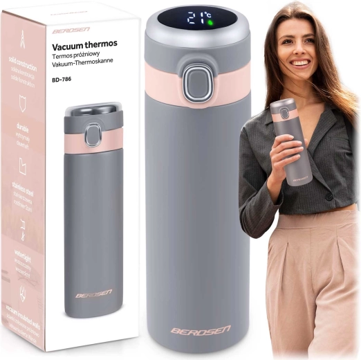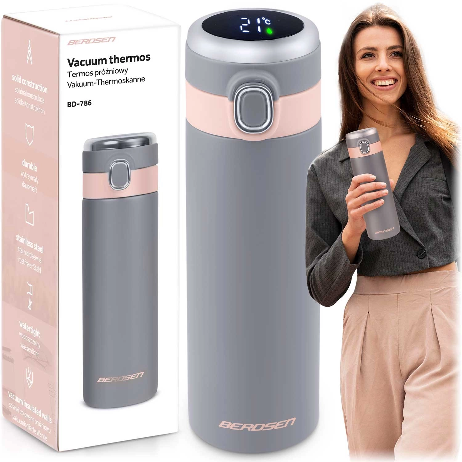 Ontdek het gemak van dagelijkse hydratatie met de elegante grijze thermos van 450 ml. De roestvrijstalen dubbelwandige constructie met TermoLite™-technologie biedt eersteklas thermische isolatie, terwijl de geïntegreerde touch-thermometer in de dop direct de actuele dranktemperatuur toont. Dankzij het lage gewicht en de ergonomische vorm ideaal voor in de auto, op het werk en tijdens het wandelen.