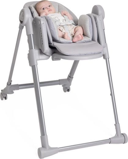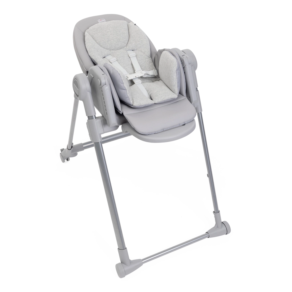 De stijlvolle eetstoel CHICCO Polly Armonia Steel past perfect in moderne huishoudens. Biedt 9 hoogtestanden, rugleuning verstelbaar tot volledige ligstand, verstelbare voetensteun en 4 wieltjes voor eenvoudig verplaatsen. Dankzij de gewatteerde inzet van 100% biologische katoen is hij geschikt vanaf de geboorte en groeit hij mee tot 40 kg. De bekleding van gerecycled materiaal is waterafstotend en wasbaar, bovendien klapt de stoel compact in en blijft zelfstandig staan.