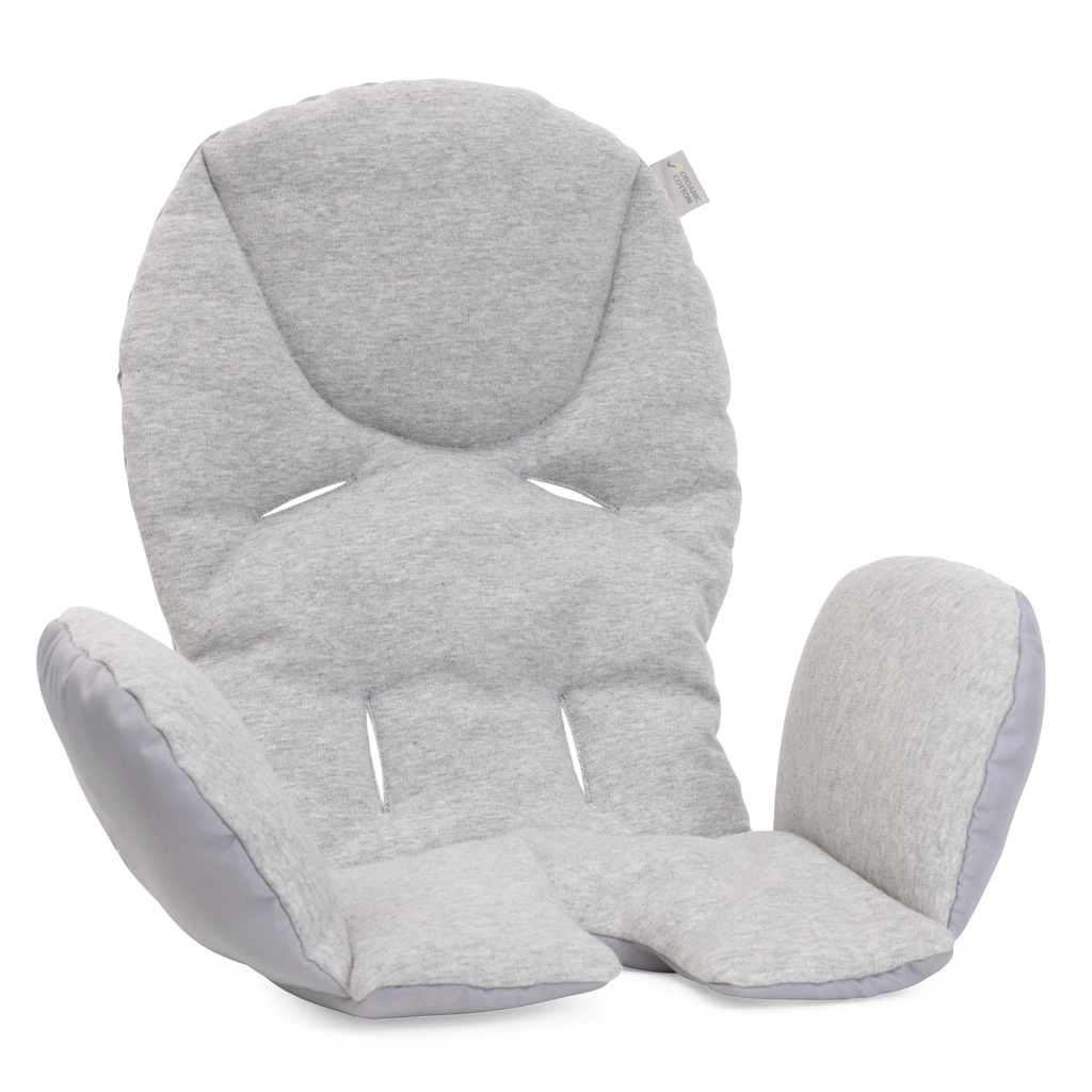 Doordachte ergonomie met een zachte newborn-inzet van biologische katoen zorgt voor geborgenheid en steun. Dankzij 9 hoogtestanden, een verstelbare rug en voetensteun zit je kind altijd comfortabel. Vier wieltjes maken verplaatsen binnenshuis makkelijk, en de makkelijk afneembare, wasbare bekleding van gerecyclede PET-flessen garandeert snelle verzorging.