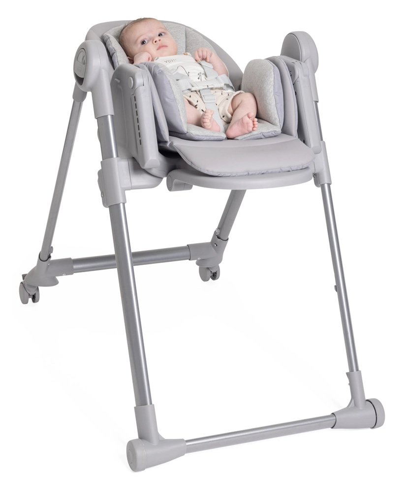 De CHICCO Polly Armonia Steel is een multifunctionele eetstoel met een tijdloze look die comfort, veiligheid en lange levensduur combineert. Je past hem eenvoudig aan dagelijkse routines aan – van rust in ligstand voor de pasgeborene, via veilige eerste hapjes, tot comfortabel mee-eten aan de eettafel.