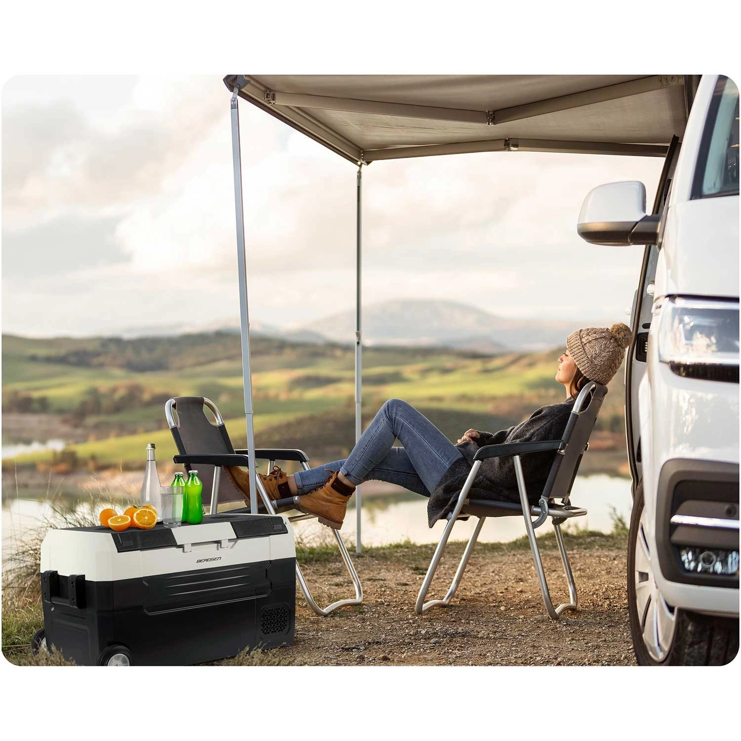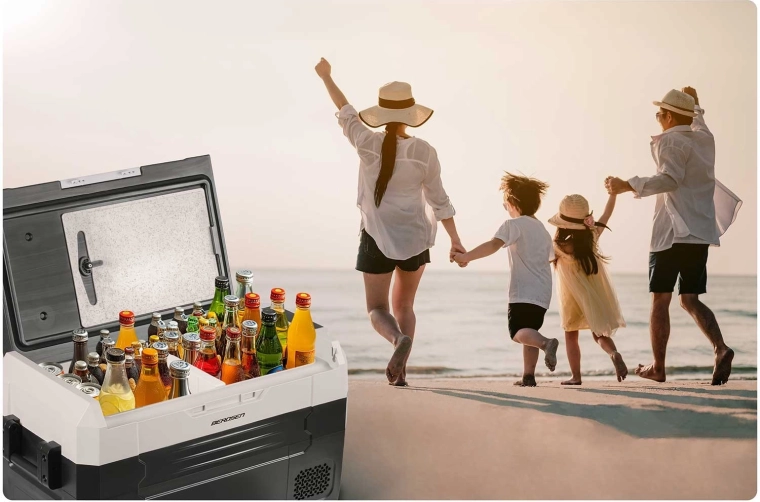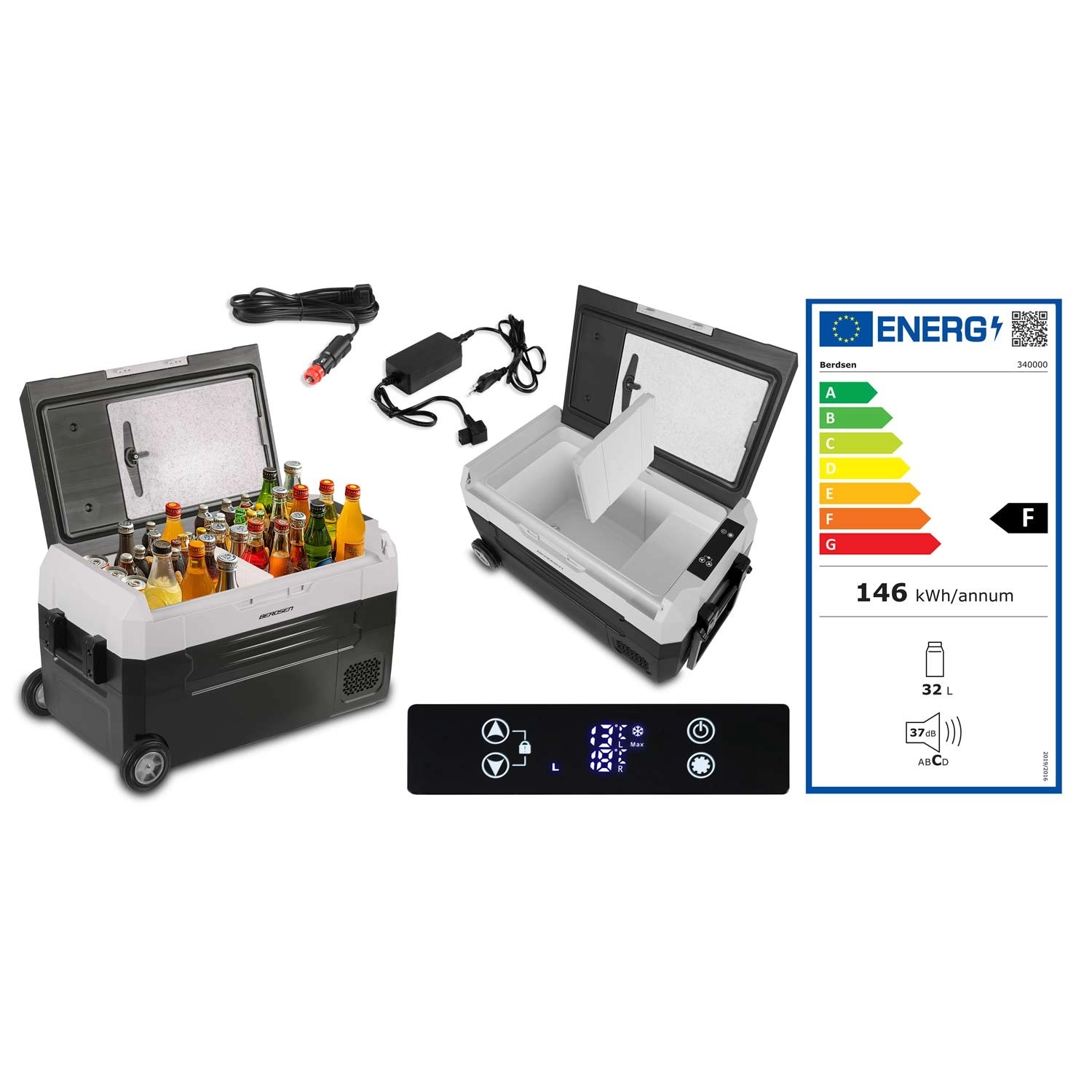 De koelbox is energiezuinig en milieuvriendelijk dankzij het koelmiddel R600a met lage GWP. In de set vindt u 2 voedingsadapters – voor het lichtnet 100–240 V en voor de sigarettenaansteker 12/24 V (3,5 m) met drie-traps accu-beveiliging. De stille werking tot 45 dB en hoogwaardige isolatie houden de temperatuur stabiel, zelfs bij hitte.