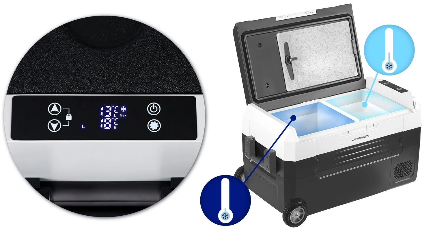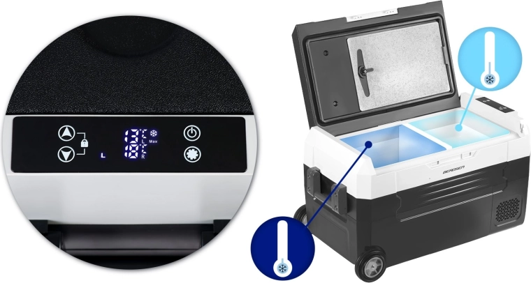 Geniet overal van verse etenswaren en gekoelde dranken. De compressorkoelbox Icemax 400 biedt nauwkeurige temperatuurinstelling van -20 °C tot +20 °C, twee onafhankelijke zones met een uitneembaar tussenschot en een intuïtief touchpaneel. Dankzij Bluetooth (Tuya Smart) stelt u temperatuur en modi comfortabel in vanaf uw telefoon, tot op 10 m afstand.