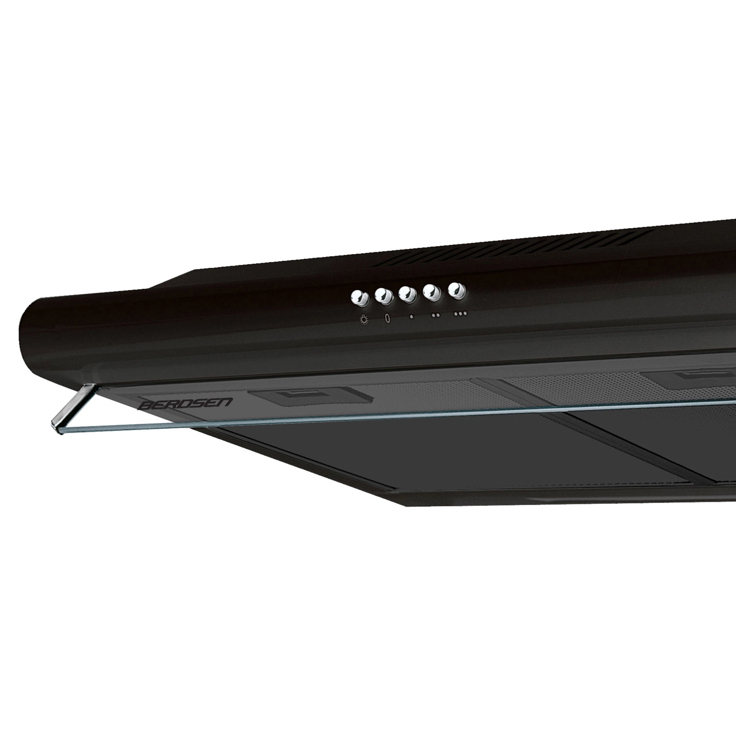 De compacte onderbouw afzuigkap BERDSEN met een breedte van 60 cm combineert een elegant zwart design, hoge efficiëntie tot 205 m³/u en zuinige LED-verlichting. Biedt 3 snelheden, mechanische bediening met knoppen en kan worden gebruikt voor zowel afvoer als recirculatie met een optioneel koolstoffilter. Ideale keuze voor moderne én klassieke keukens.
