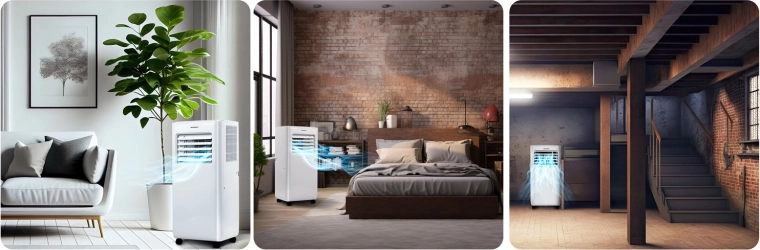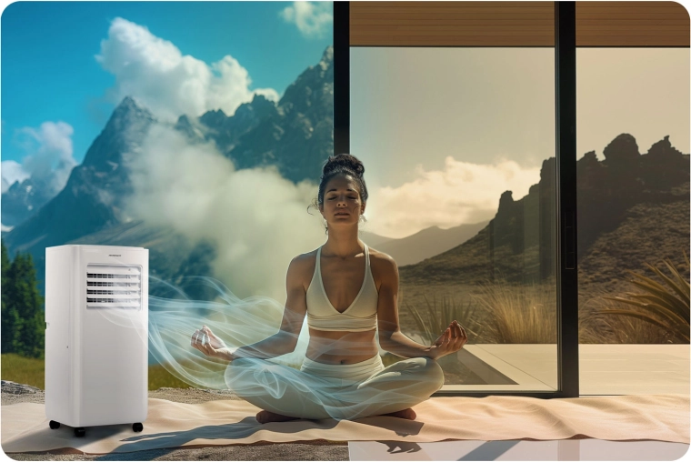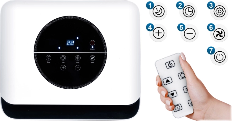 Koelvermogen 2,9 kW (10000 BTU) en ontvochtiging tot 26 l/24 u verlagen snel zowel temperatuur als luchtvochtigheid. Ideaal voor ruimtes van 30–40 m³.