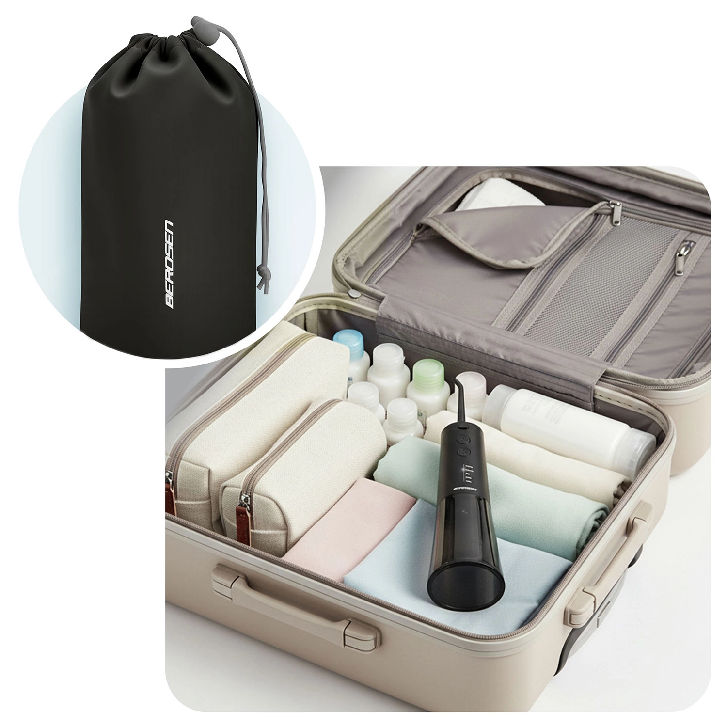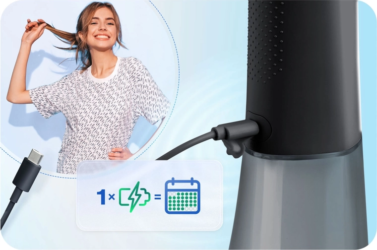 Dankzij de 360° draaibare spuitmond bereikt u gemakkelijk alle plekken; het wisselen van opzetstukken gaat in een handomdraai. De batterij gaat ongeveer 30 dagen mee op één lading en opladen gebeurt via USB‑C. IPX7‑waterdichtheid zorgt voor veilig gebruik in de badkamer. Er is ook een reisetui meegeleverd, zodat u de irrigator comfortabel meeneemt op vakantie of zakenreis.