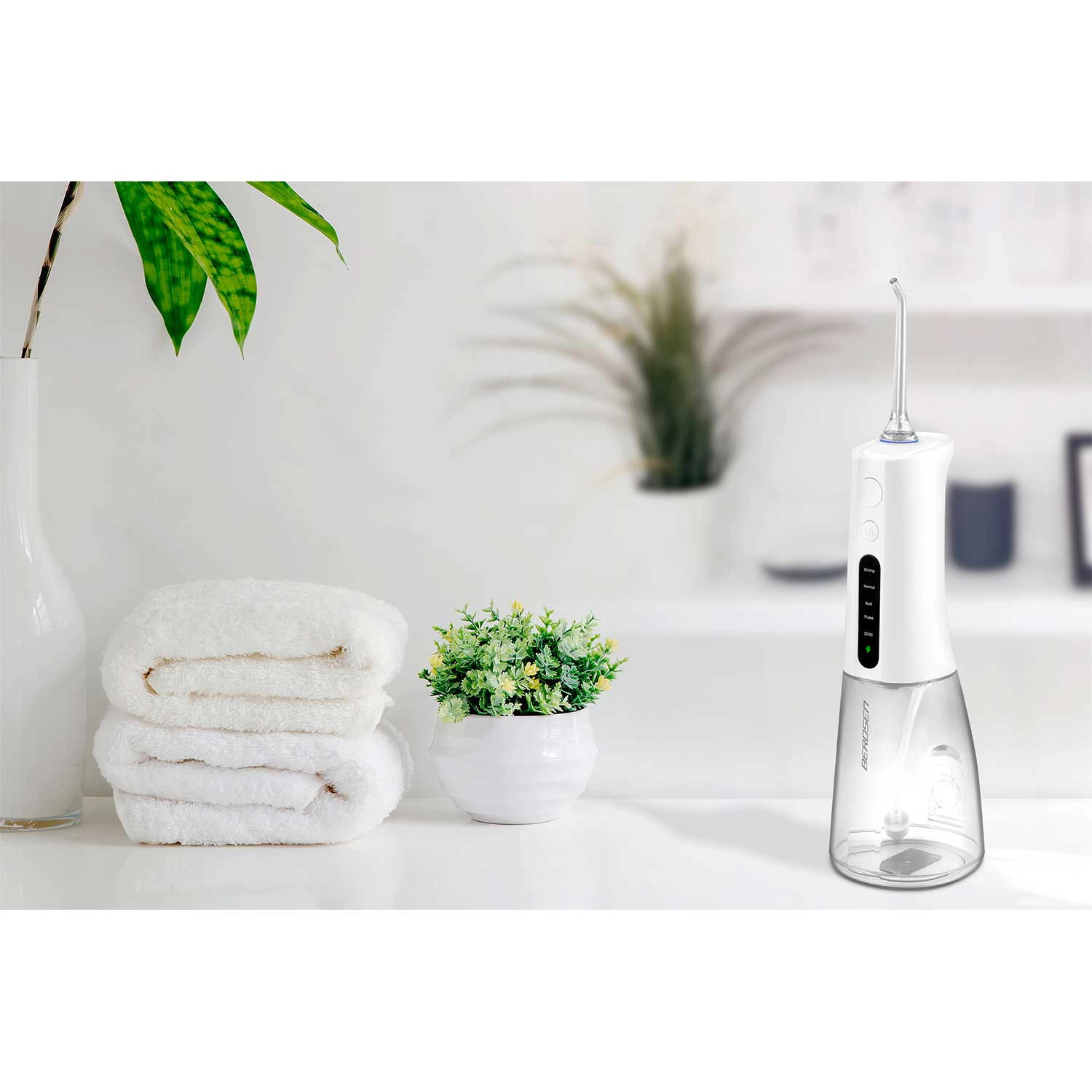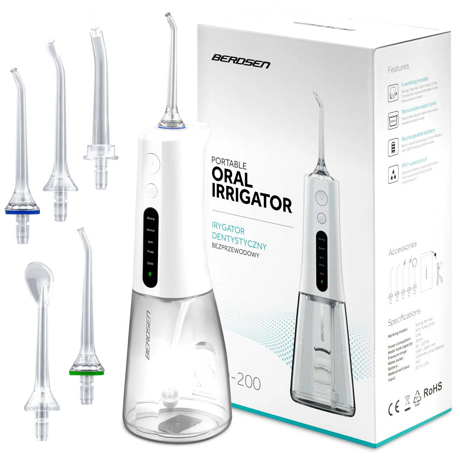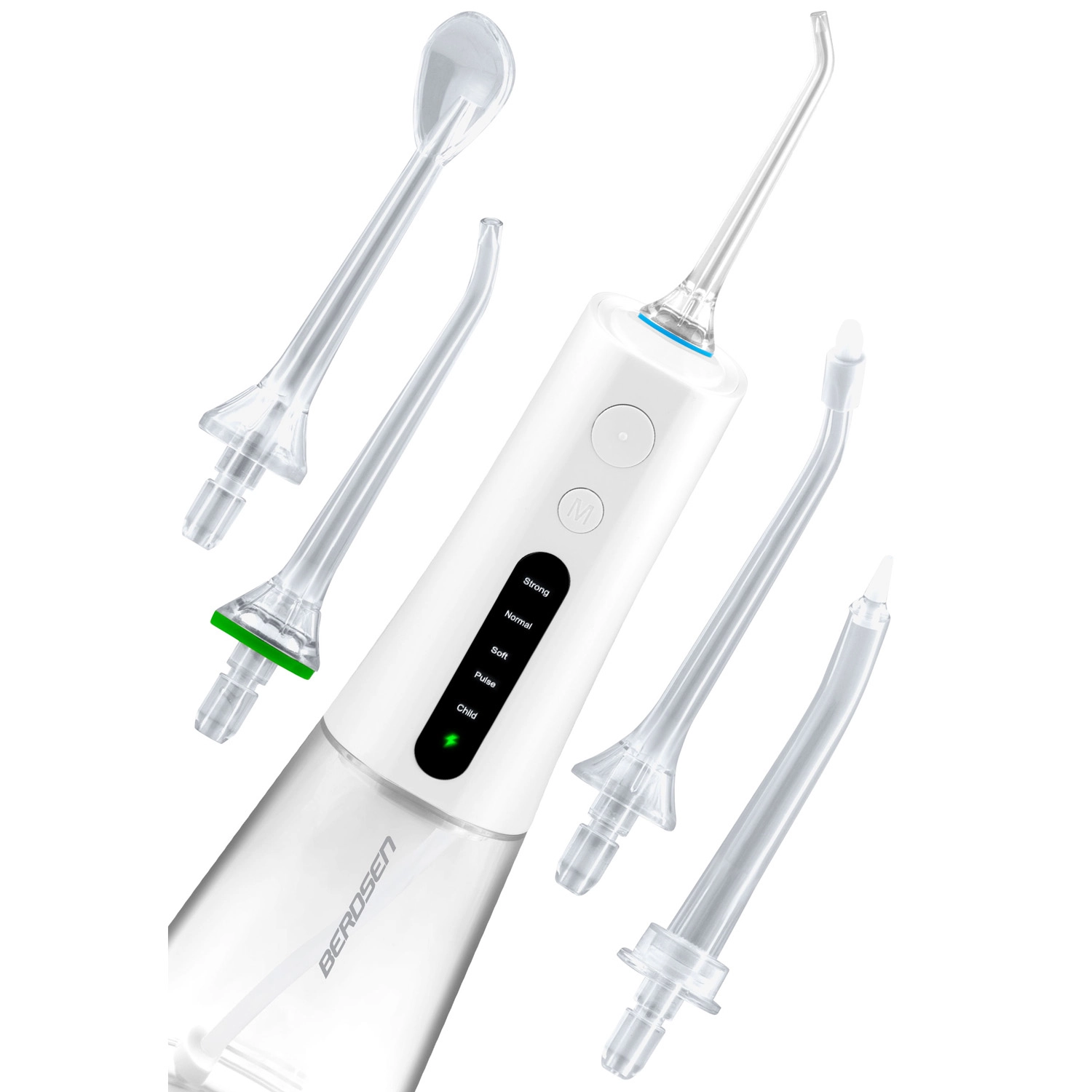 De draadloze monddouche BERDSEN verwijdert effectief voedselresten, tandplak en bacteriën uit plaatsen waar een gewone tandenborstel niet bij komt. Ideaal voor interdentale ruimtes, kronen, bruggen, implantaten en beugels. Een slanke waterstraal met tot 1800 pulsen/min zorgt voor precieze hygiëne en een fris gevoel de hele dag.