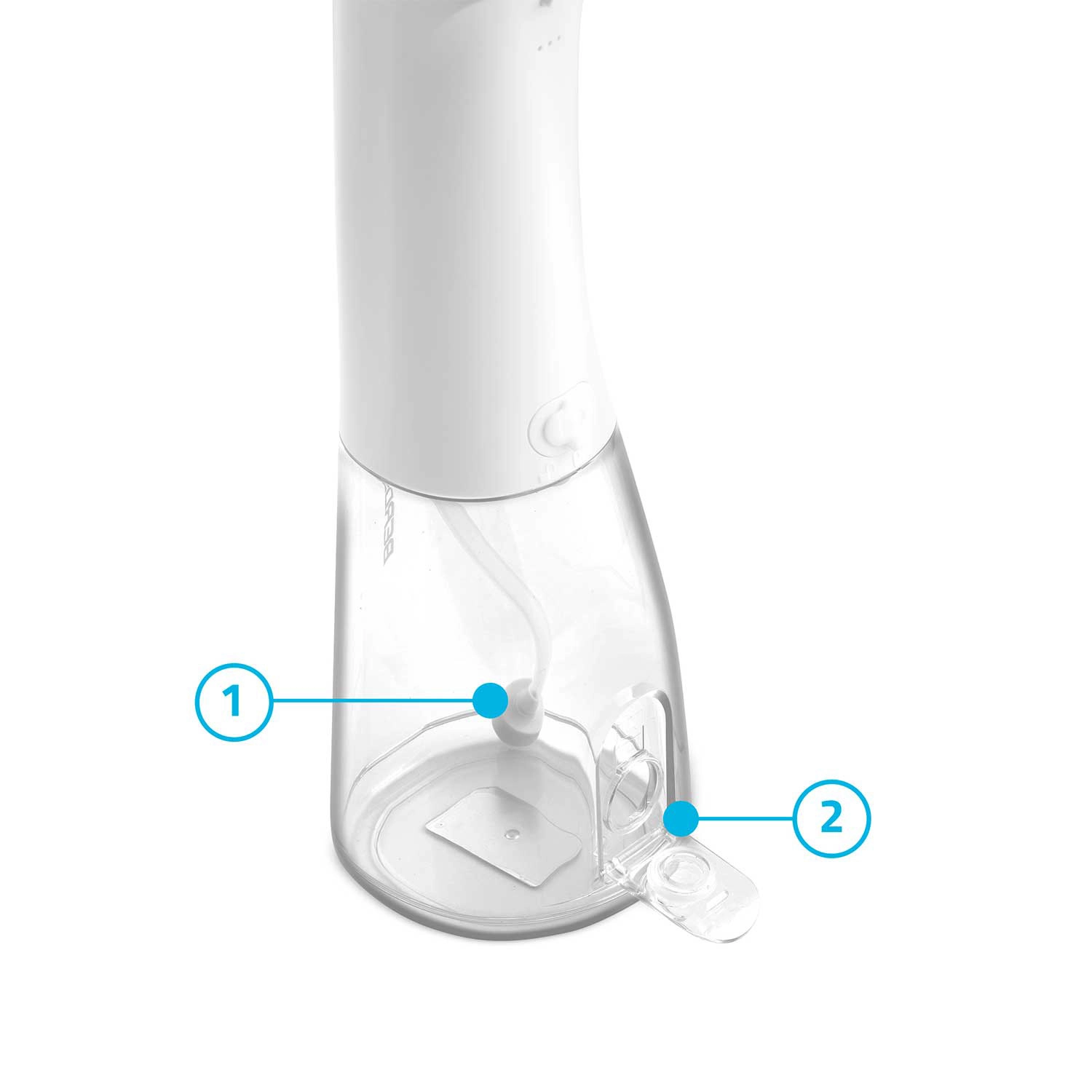 De inhoud van 300 ml is voldoende voor een complete irrigatie zonder bijvullen. Makkelijk te vullen en transparant reservoir voor snelle controle van het waterniveau.