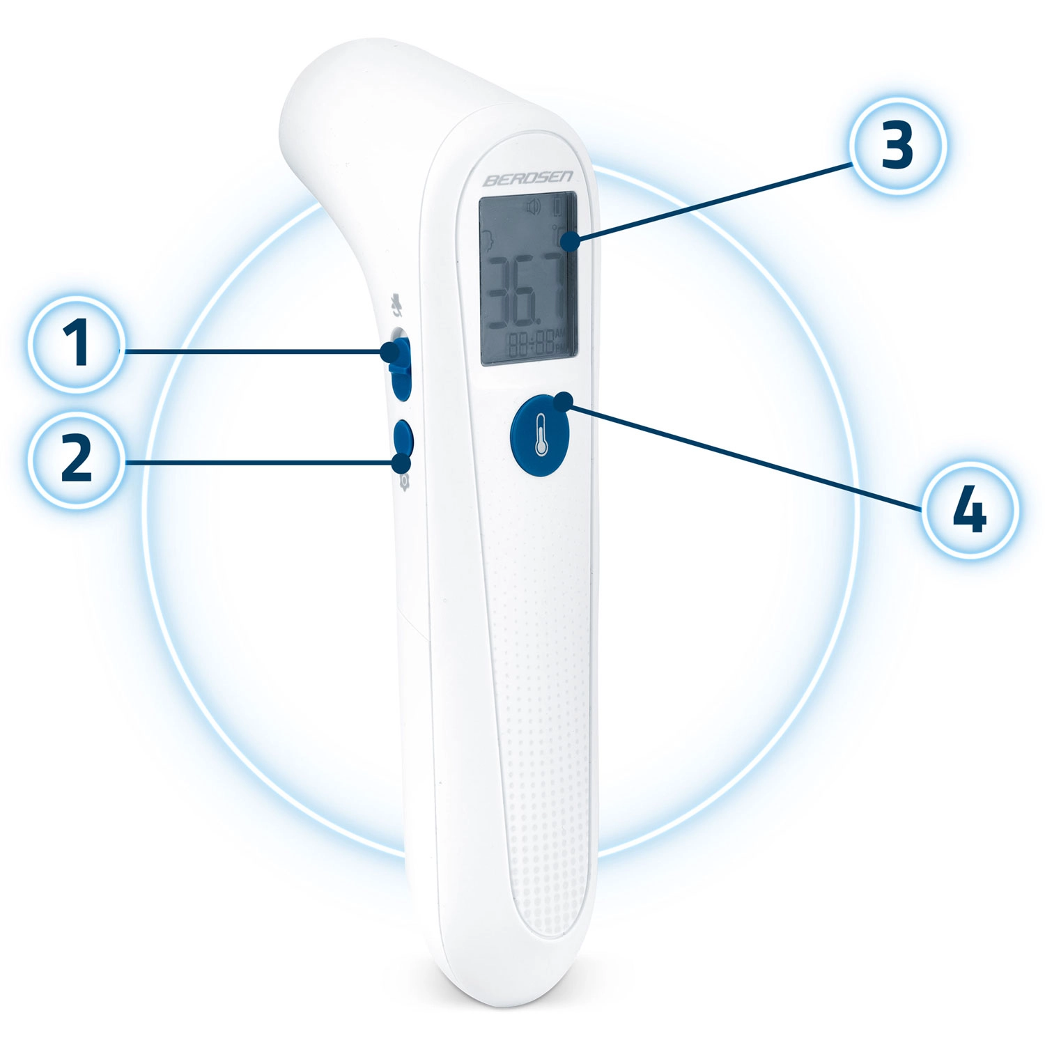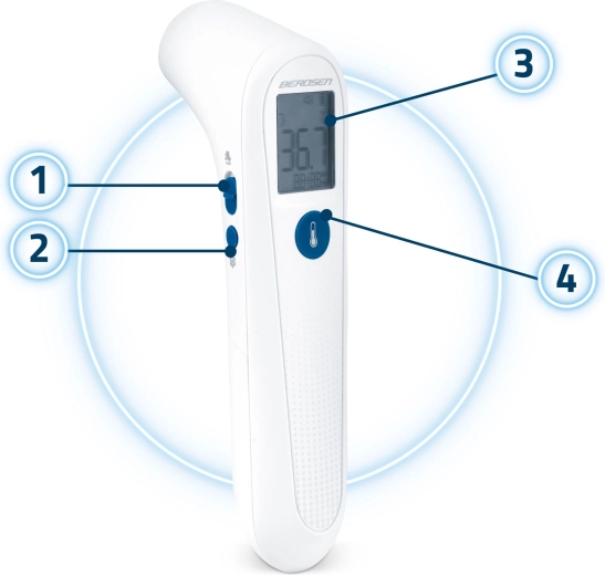 De contactloze infraroodthermometer Berdsen BD-101 is een betrouwbare hulp voor snelle en nauwkeurige controle van zowel de lichaamstemperatuur als oppervlaktetemperaturen. Dankzij directe meting in circa 1 s en contactloze werking is hij ideaal voor kinderen, senioren en nachtelijke metingen zonder wakker te maken. Achtergrondverlichting van de LCD in 3 kleuren maakt het snel herkennen van normaal, verhoogd en koorts mogelijk.