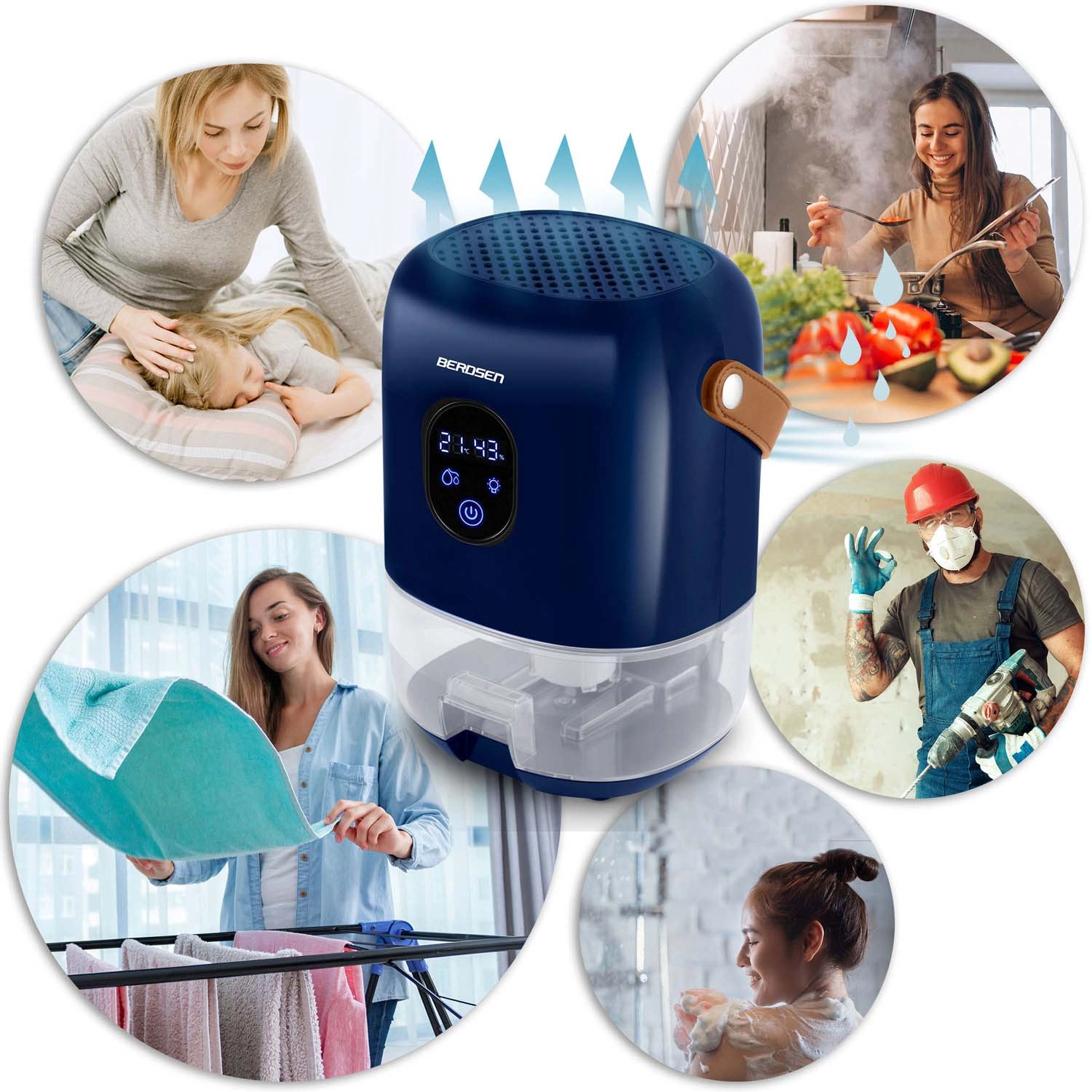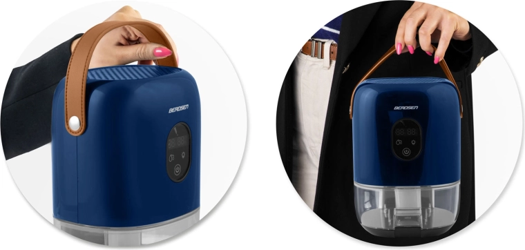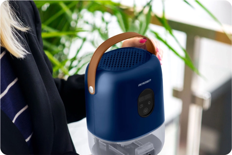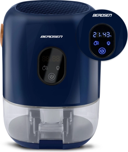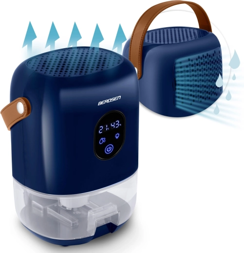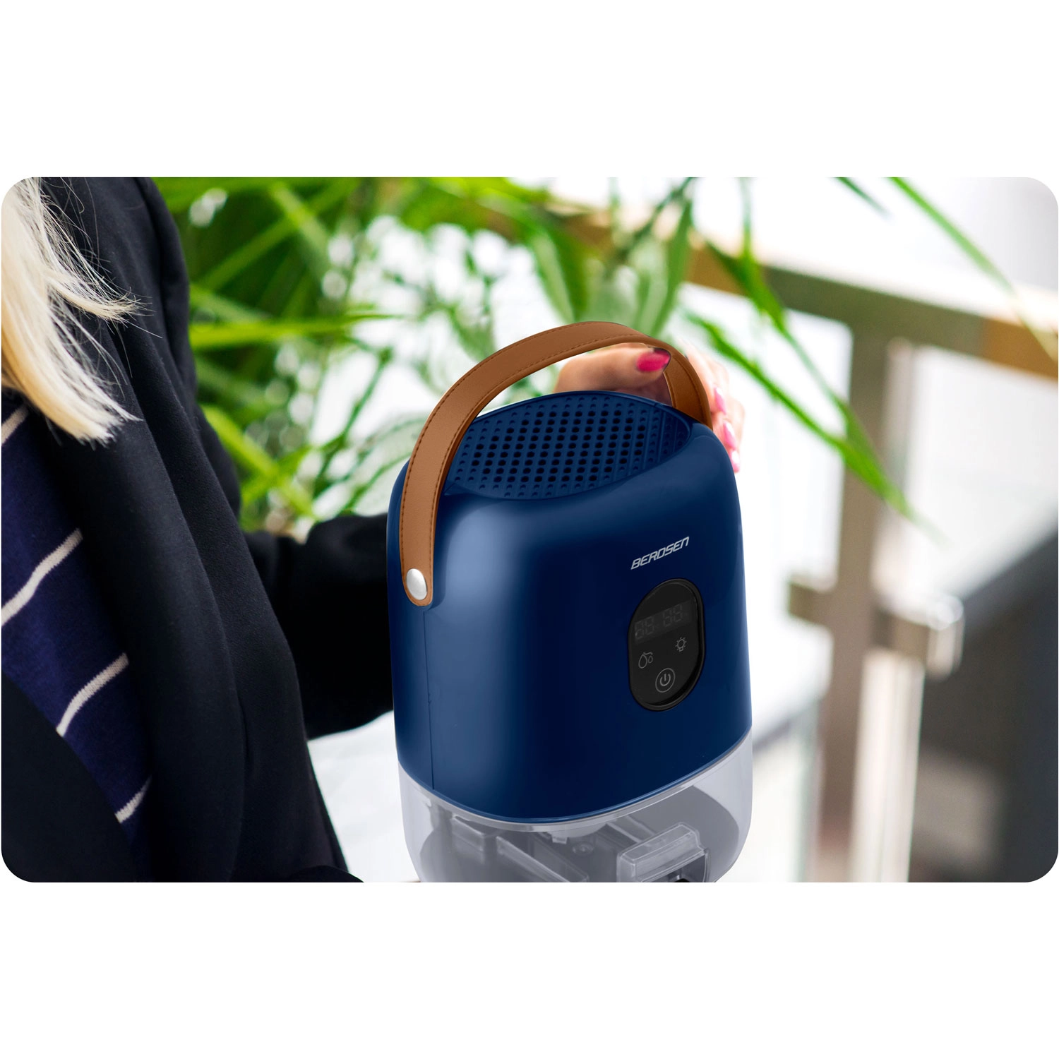 De compacte BERDSEN BR-10B luchtontvochtiger vermindert effectief de luchtvochtigheid in huis en creëert een gezonder binnenklimaat. Hij biedt ultrastille werking tot 34 dB, laag verbruik van 22,5 W, een grote tank van 1000 ml en intuitieve touchbediening met een duidelijk display. Het elegante design met LED-verlichting en een praktisch eco-leren draaglus past perfect in ieder interieur.