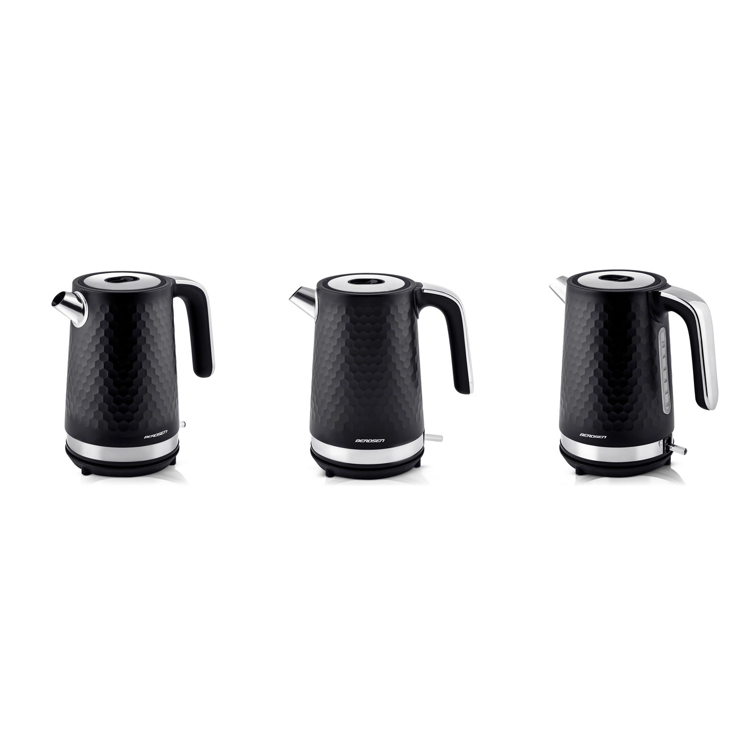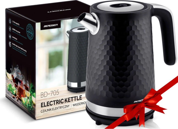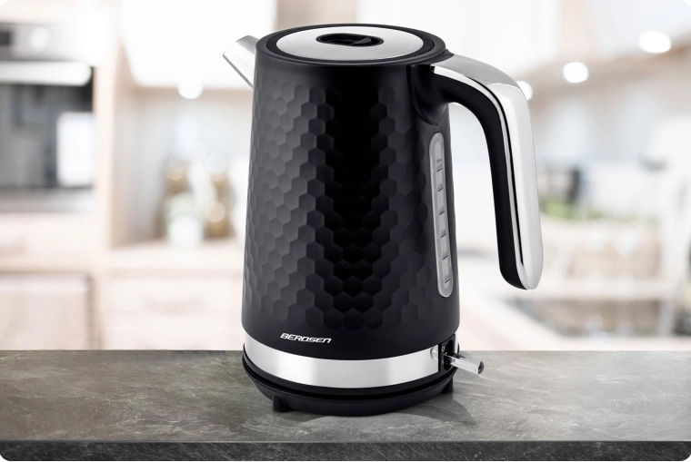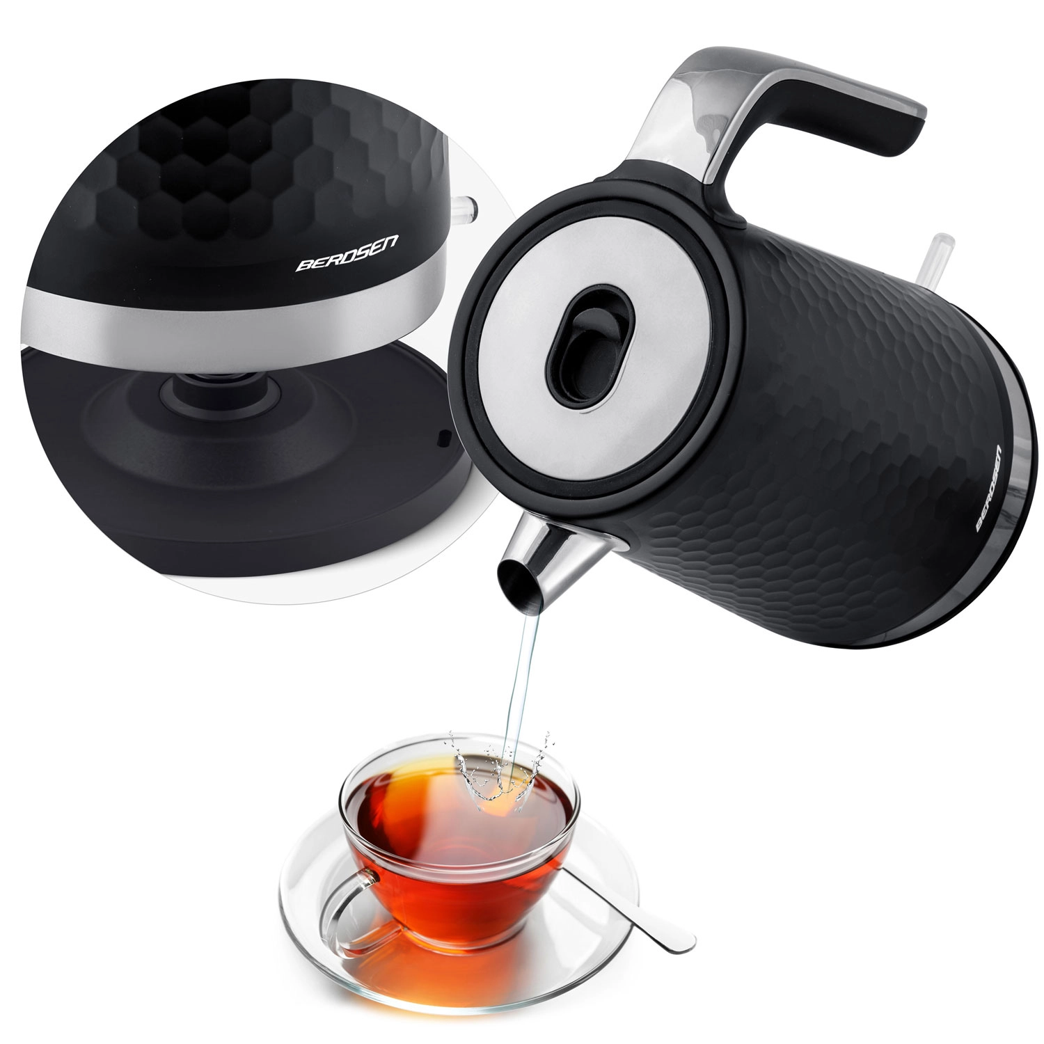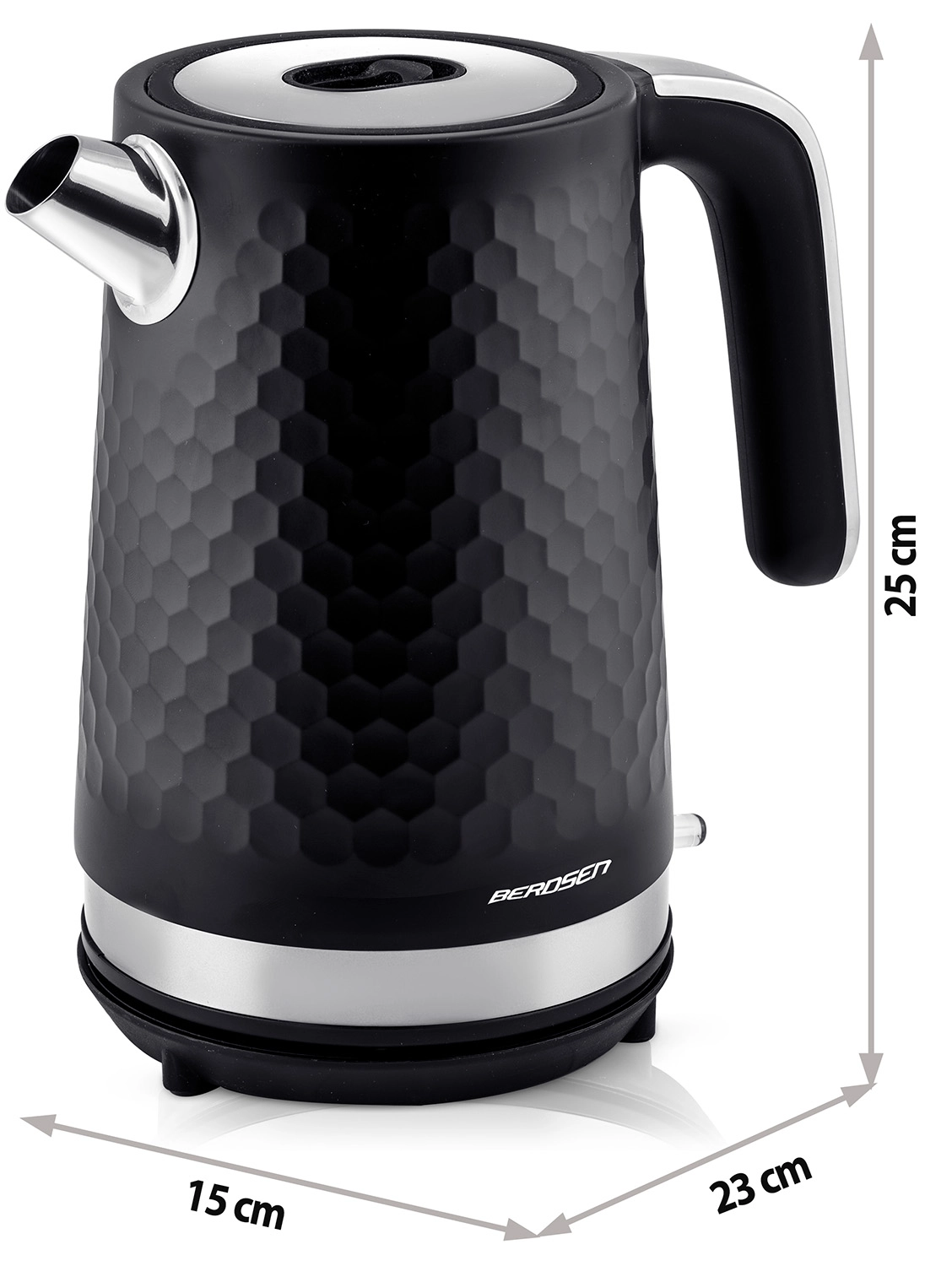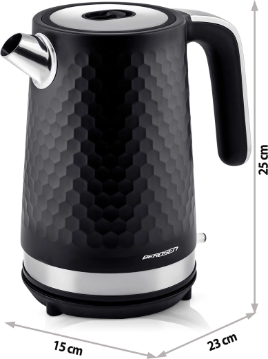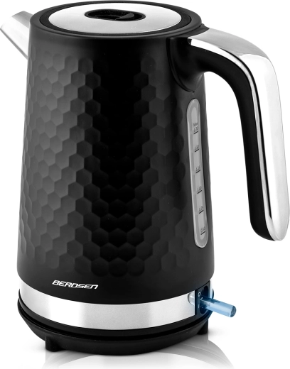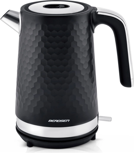 Ontdek een elegante keukentool die design en prestaties combineert. De BERDSEN waterkoker met metalen, matzwarte afwerking en zilverkleurige accenten past perfect in moderne interieurs met tinten wit, grijs, antraciet en zwart. Dankzij het hoge vermogen van 1850–2200 W wordt water snel en efficiënt gekookt, terwijl het waterpeilvenster en de verlichte schakelaar het dagelijks gebruik veraangenamen.