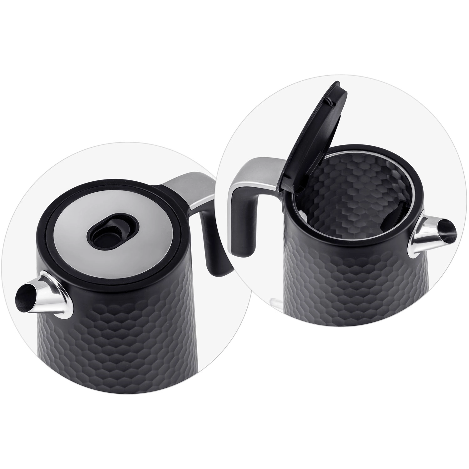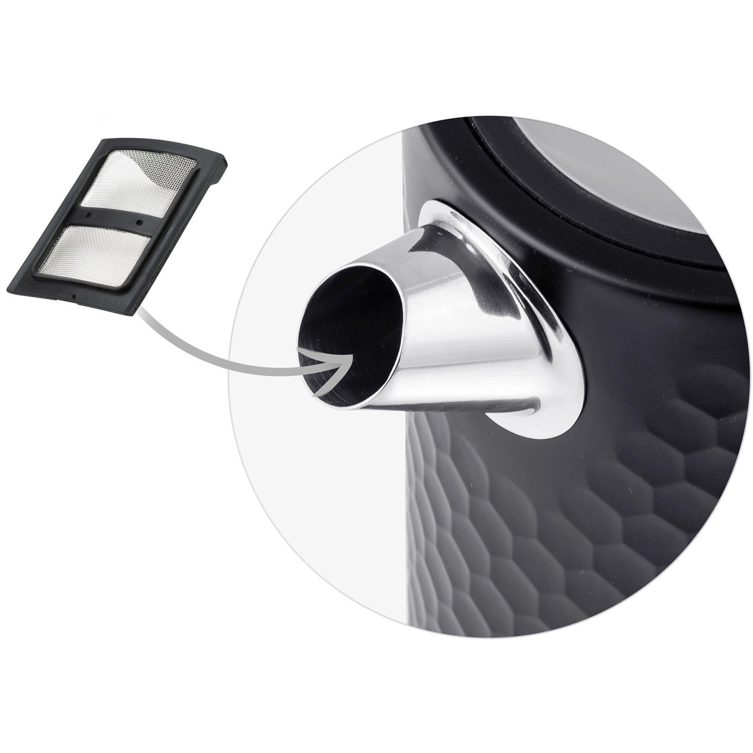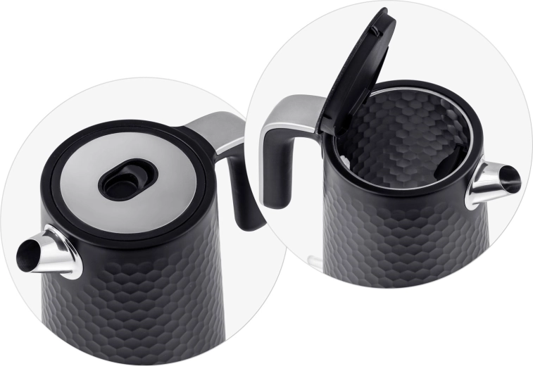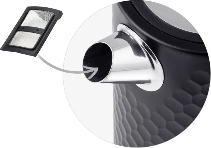De waterkoker is ontworpen voor maximaal comfort: de 360° draaibare basis maakt neerzetten eenvoudig voor zowel links- als rechtshandigen, de afneembare deksel vergemakkelijkt vullen en reinigen en antislipvoetjes zorgen voor stabiliteit. Het metalen kalkfilter houdt onzuiverheden tegen en is eenvoudig uit te nemen en te reinigen. Voor veilige werking is er droogkookbeveiliging.