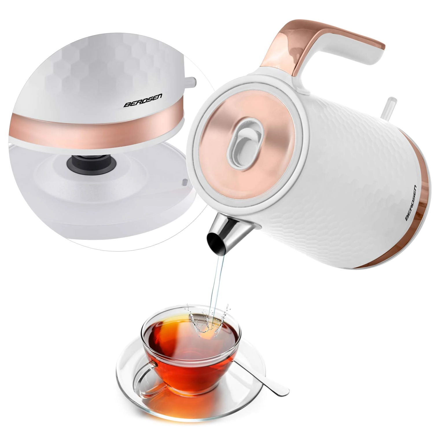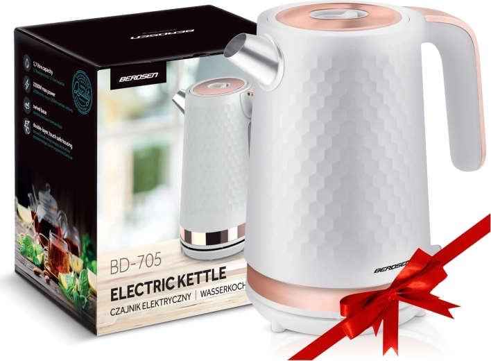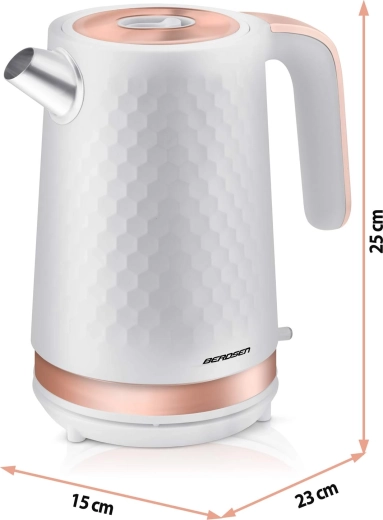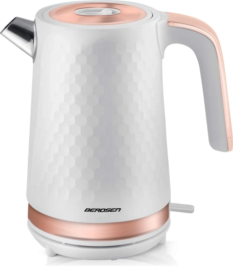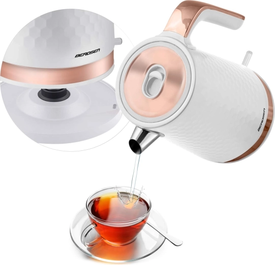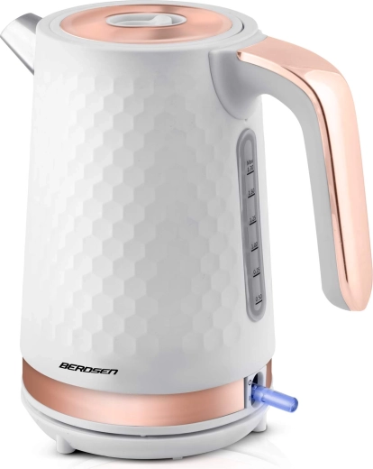 Ontdek comfortabel en veilig water koken met de BERDSEN-waterkoker, die dankzij het vermogen van 1850–2200 W snel aan de kook komt en tijd bespaart. De metalen constructie met matte afwerking is duurzaam, onderhoudsvriendelijk en een stijlvolle aanvulling op je interieur. De waterpeilindicator en de verlichte aan/uit-schakelaar maken dagelijks gebruik extra prettig.