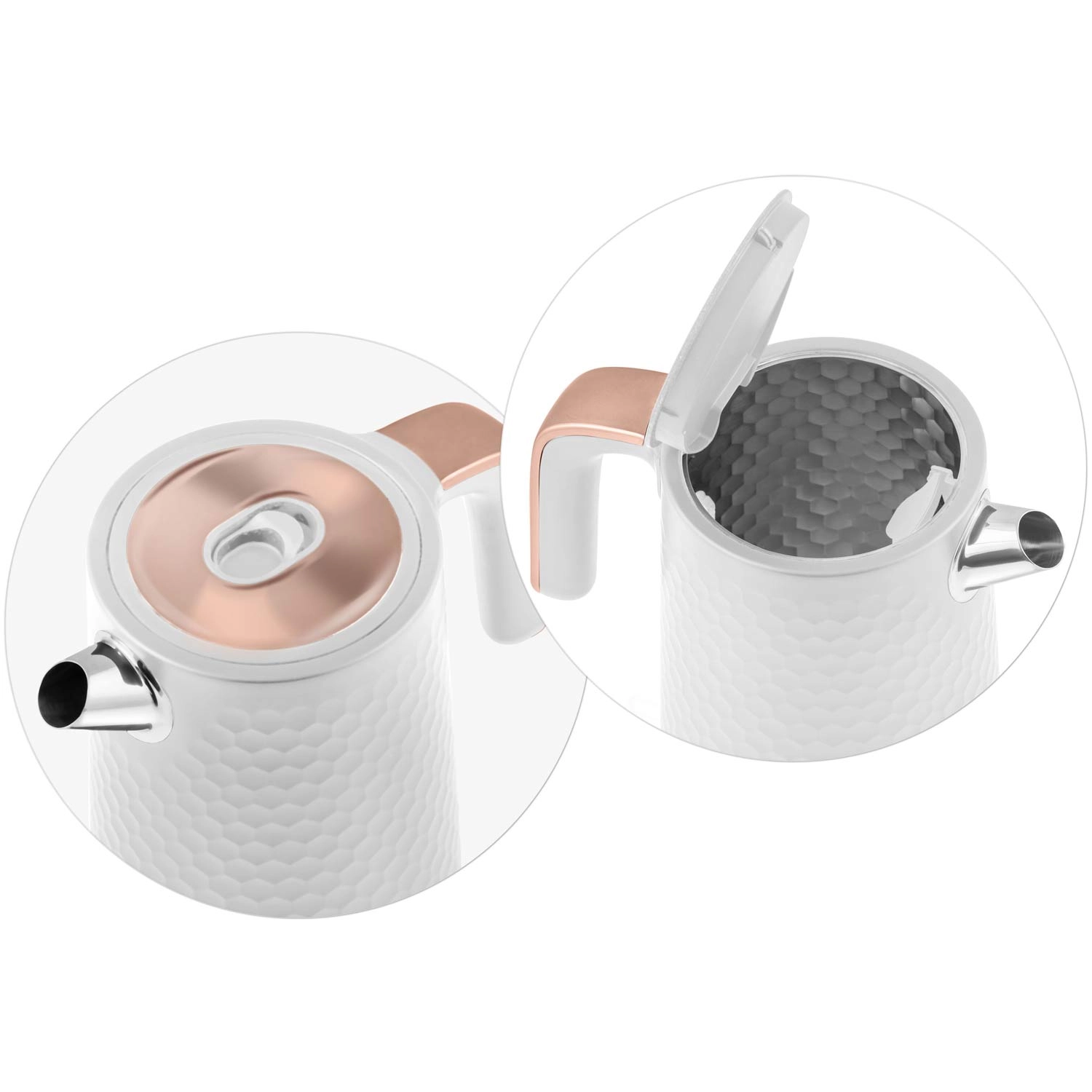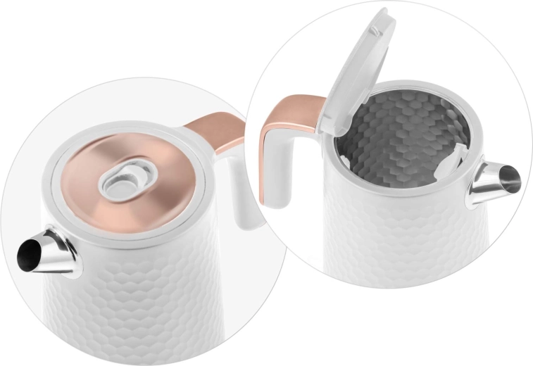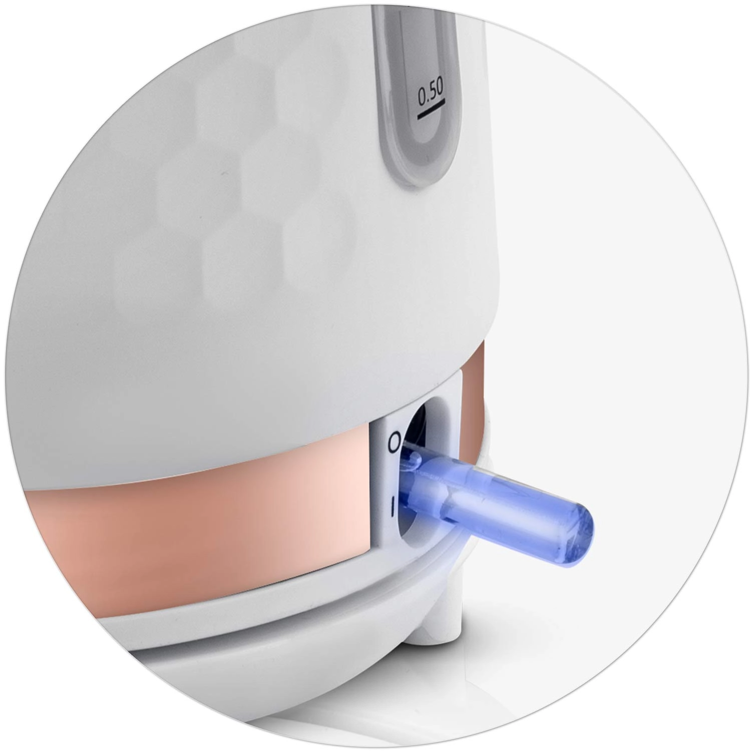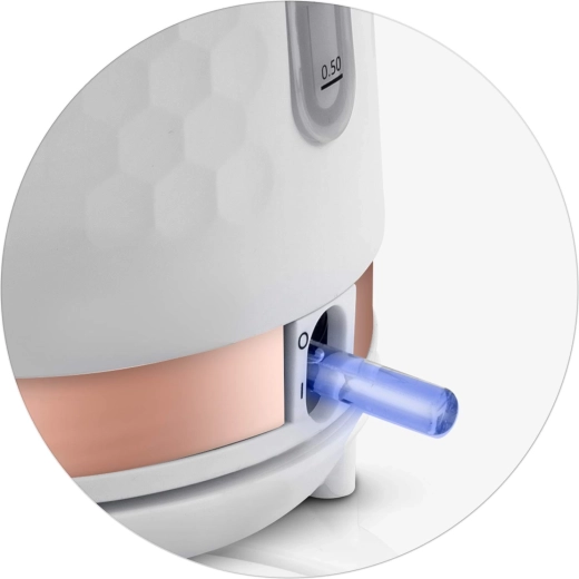 De praktische 360° draaivoet met antislipvoetjes en kabelopbergruimte zorgt voor comfort voor zowel links- als rechtshandigen. Het uitneembare antikalkfilter in de schenktuit vangt mineraalafzettingen op, zodat je kunt genieten van perfect schone thee en koffie. Droogkookbeveiliging biedt extra veiligheid tijdens het gebruik.