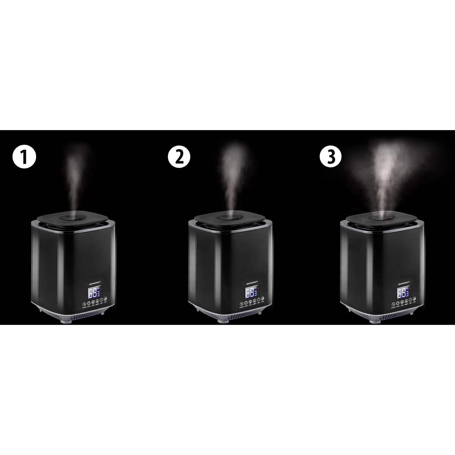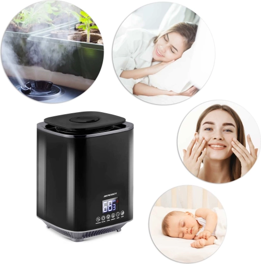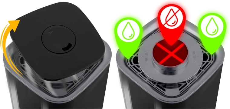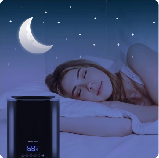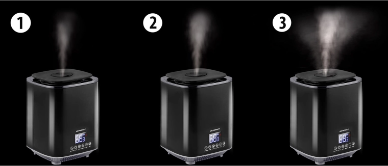 De ingebouwde hygrostaat en hygrometer bewaken de luchtvochtigheid nauwkeurig. Zodra de doelwaarde is bereikt, gaat de bevochtiger naar stand-bymodus en hervat hij automatisch bij een daling.