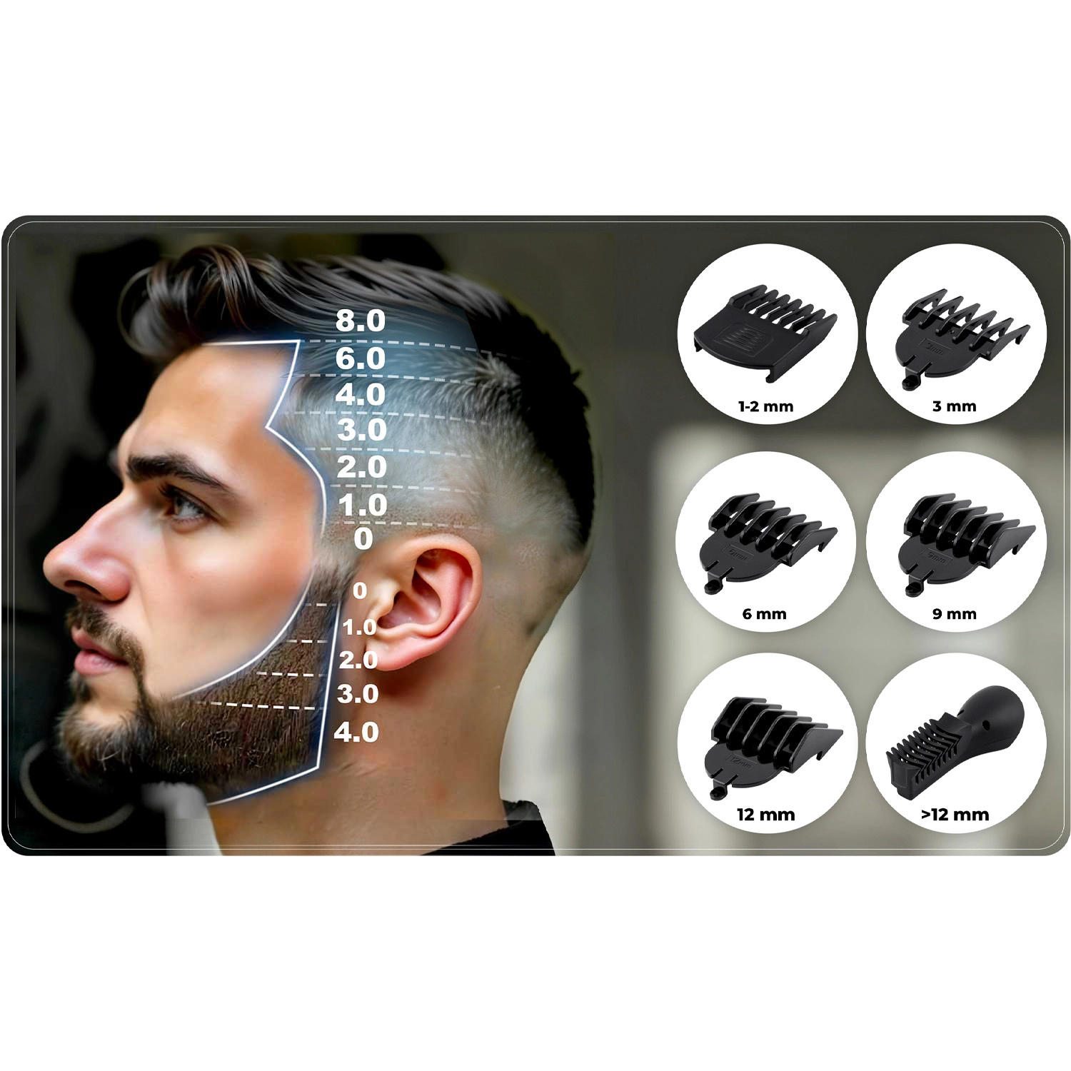 - Flexibele lengtes – opzetkammen 1–12 mm voor schaduweffecten en diverse stijlen.