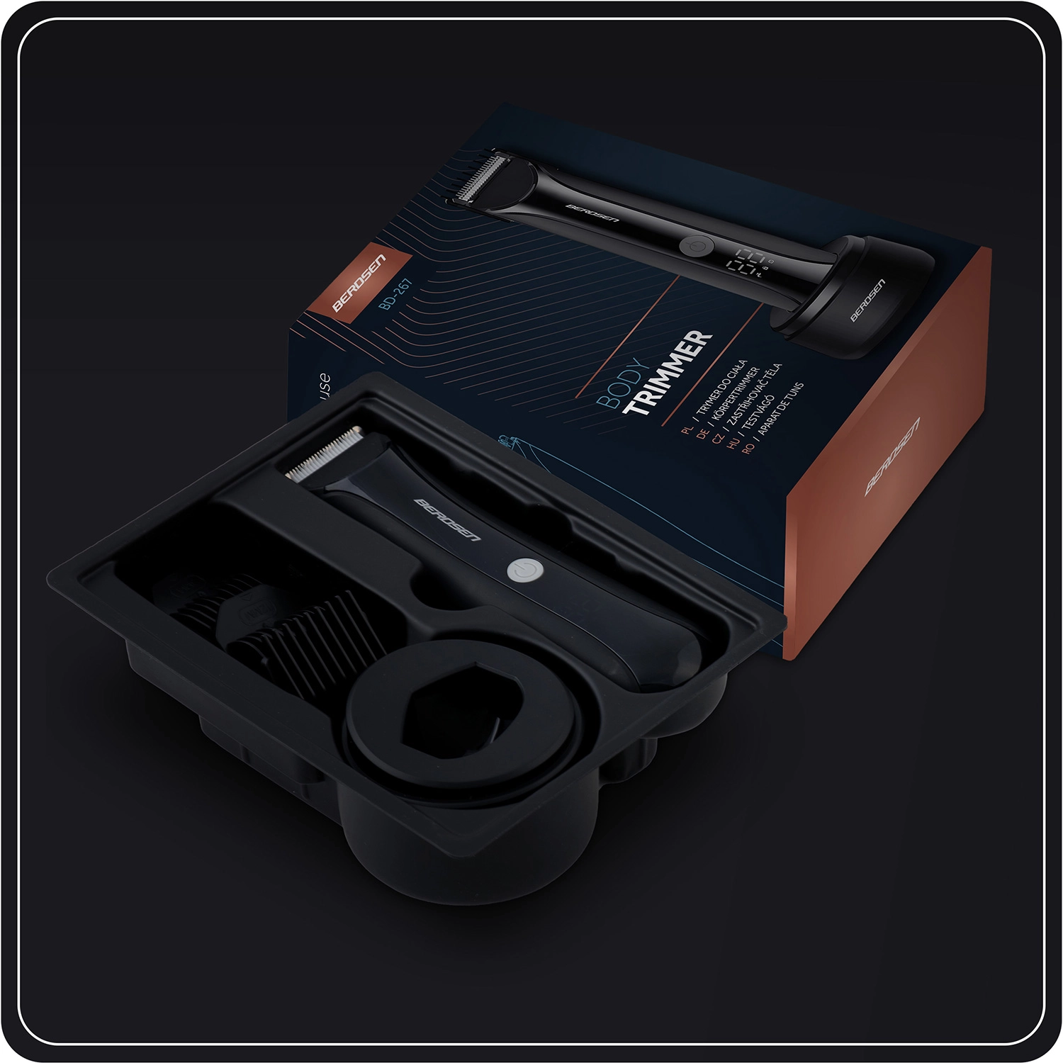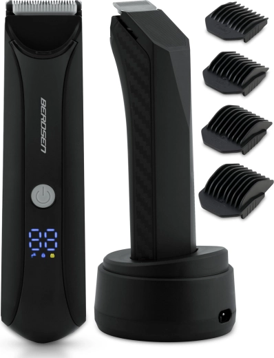De universele trimmer BERDSEN Barber Master is ideaal voor dagelijkse verzorging van haar en baard. Hij biedt scherpe stalen messen voor een precieze snit, een LCD‑display met batterij-indicator en vergrendelfuncties, een krachtige motor voor een soepele werking en tot 90 minuten draadloos gebruik. In de set vind je 4 opzetkammen van 3–12 mm, een oplaadstandaard, een USB‑C‑kabel en een reinigingsborsteltje.