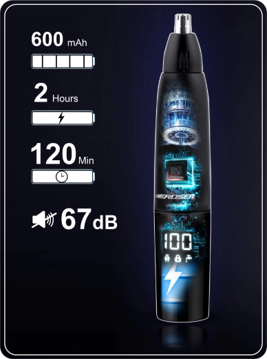 BERDSEN BD‑269 is een veelzijdige 3‑in‑1 trimmer voor neus, oren en detailafwerking van baard. De stalen dubbele messen zorgen voor een gladde en precieze snit zonder het risico op vastlopen. Het geïntegreerde lcd‑scherm toont de accustatus en toerental voor volledige controle over je styling.