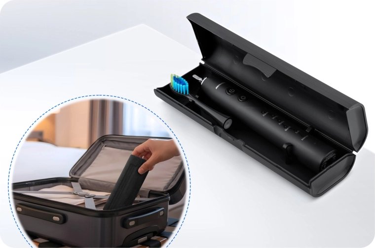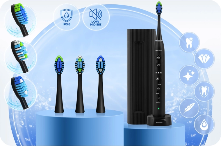 Lange gebruiksduur tot 50 dagen op één lading dankzij de 800 mAh batterij, eenvoudig inductief USB-opladen en hoge IPX8-waterdichtheid garanderen comfort thuis en onderweg. In de set vind je 3 vervangende opzetborstels en een praktisch reisetui, zodat je direct kunt beginnen.