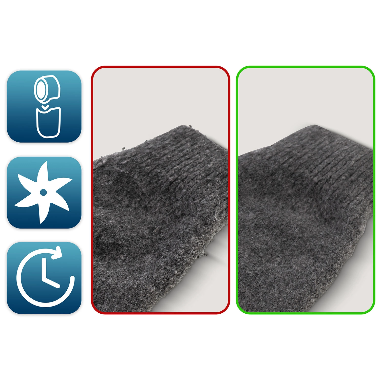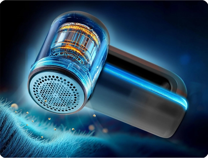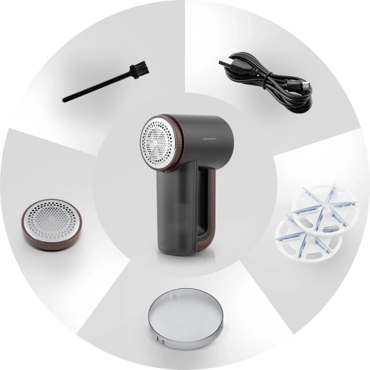- Precieze roestvrijstalen messen voor snel en gelijkmatig verwijderen van pluisjes.