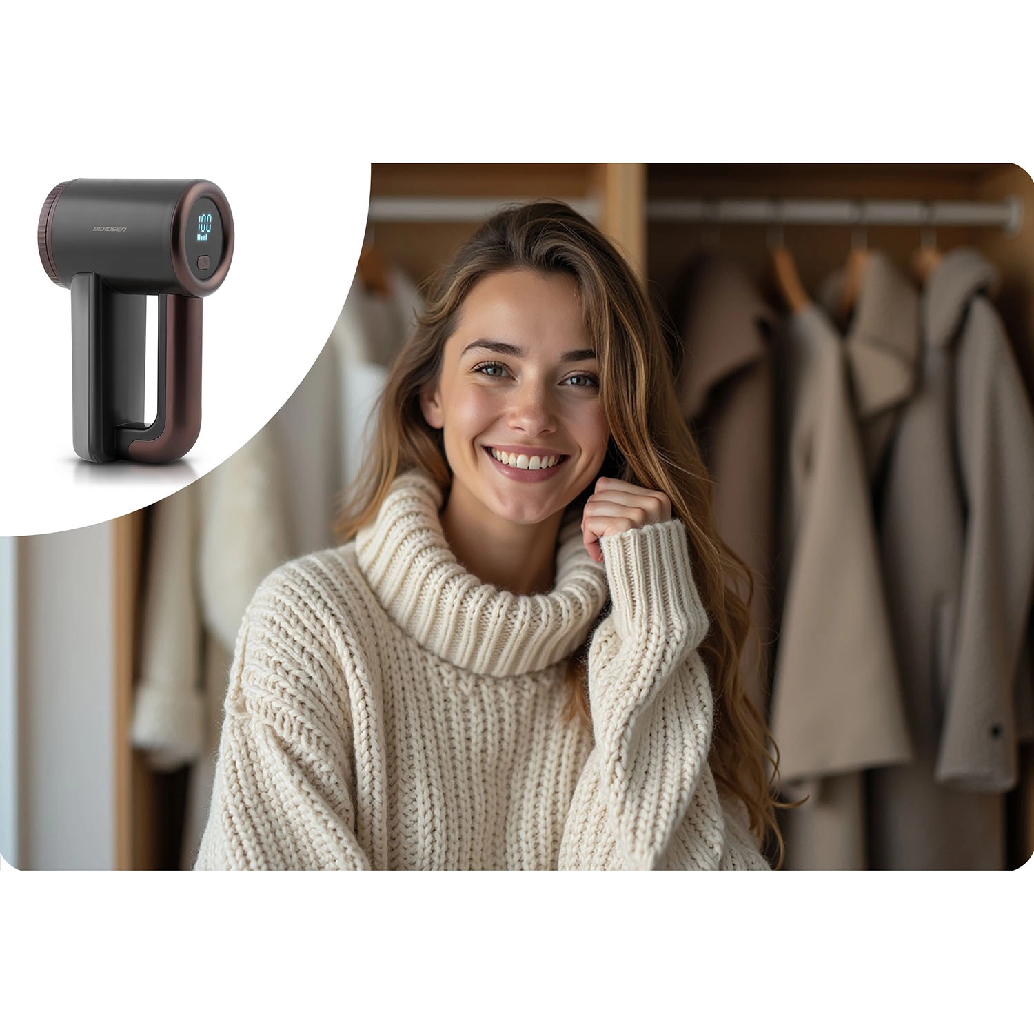 Geef je favoriete kledingstukken een frisse look – de BERDSEN‑ontpiller verwijdert pluisjes voorzichtig en effectief van breisels, jassen, overhemden, maar ook van dekens, tapijten en bekleding. De ergonomische vorm en het overzichtelijke LCD‑display zorgen voor comfortabel gebruik, thuis en onderweg.