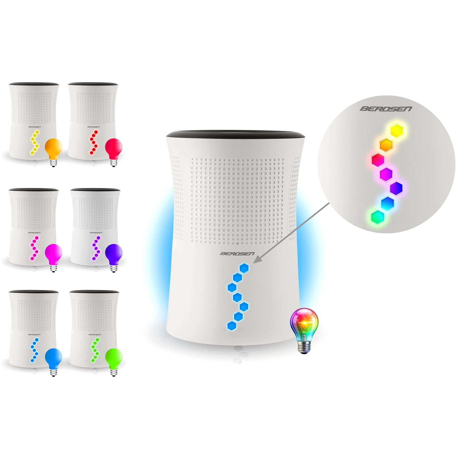 De BERDSEN BD-527 is een betrouwbare vochtvreter die helpt schimmel, bacteriën en muffe geuren te voorkomen. Dankzij de thermo-elektrische Peltier-technologie werkt hij energiezuinig en stil, waardoor hij ook geschikt is voor slaapkamers of kinderkamers. De geïntegreerde LED-achtergrondverlichting met vloeiende kleurovergang of vaste tint kan aan de sfeer worden aangepast of volledig worden uitgeschakeld in de nachtmodus.