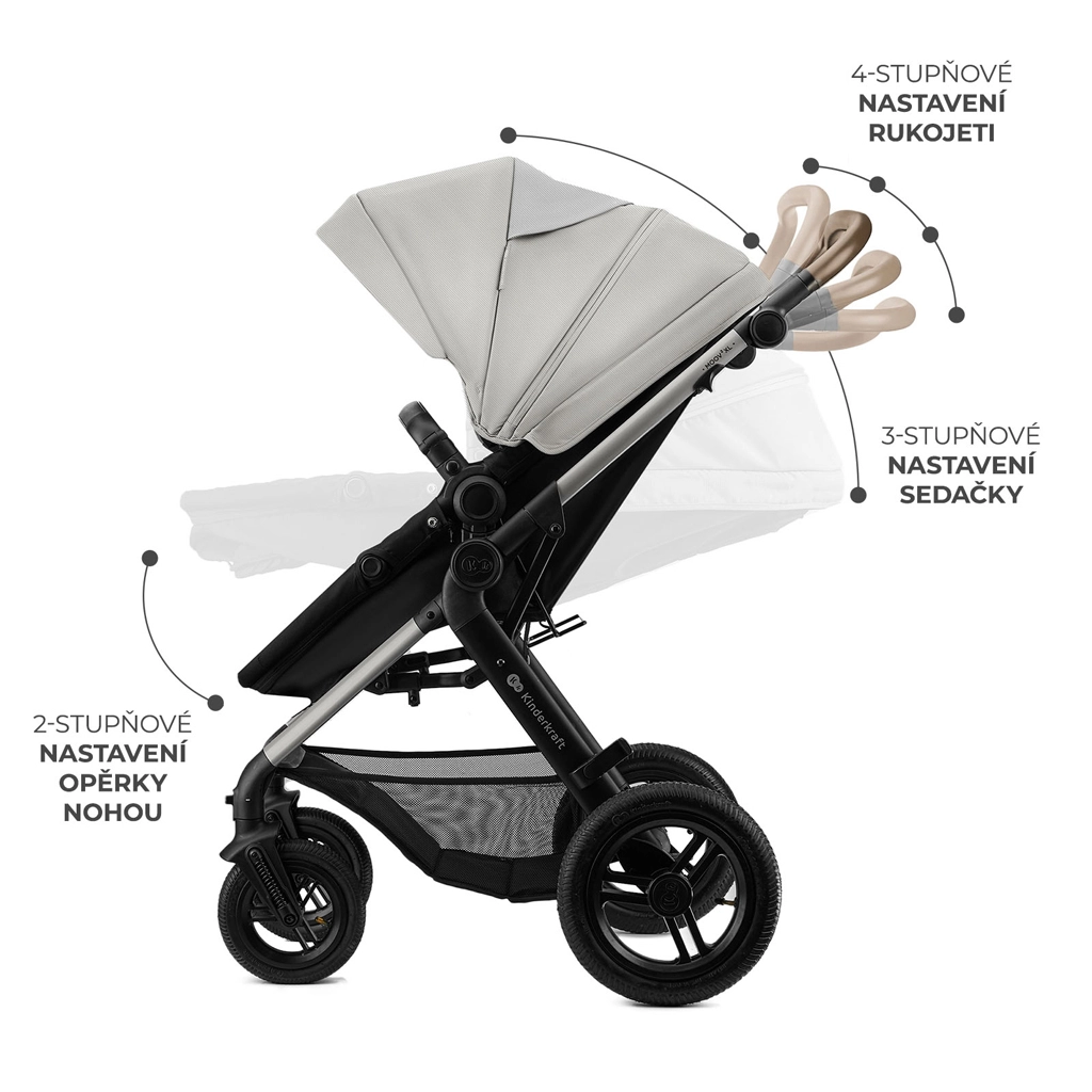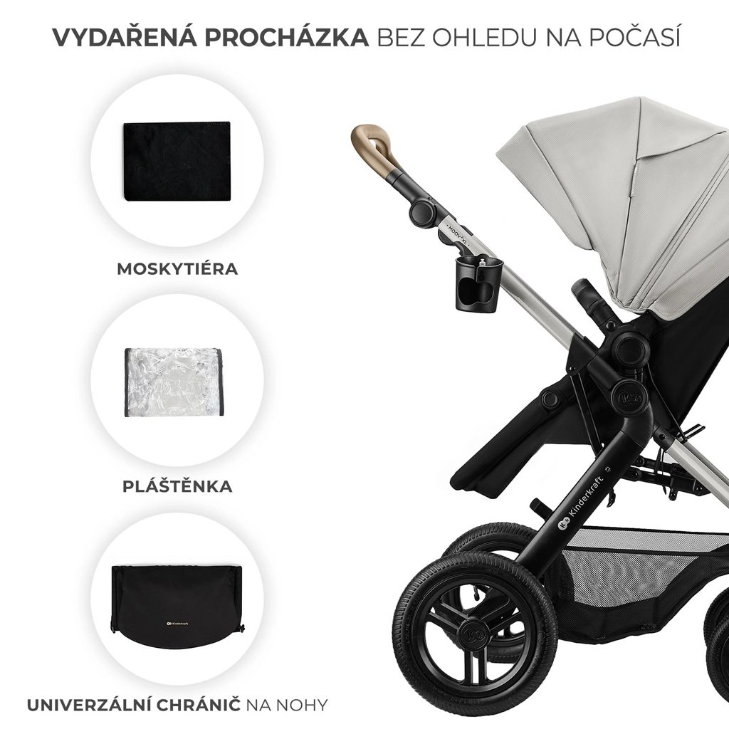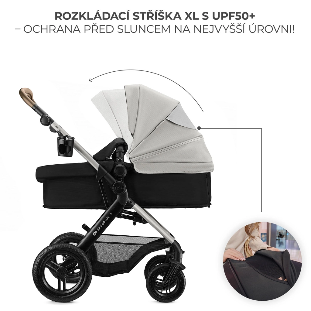 De KINDERKRAFT MOOV 2 XL Air is een doordachte kinderwagen voor moderne ouders die op zoek zijn naar praktische oplossingen zonder compromis. De 2-in-1 zitting bespaart ruimte en tijd – in een oogwenk verander je de ruime reiswieg in een comfortabel sportzitje. Dankzij de XL reiswieg met panoramische ventilatie ademt je baby prettig, ook op warmere dagen, terwijl de vergrootbare kap met UPF50+ beschermt tegen zon en wind.
